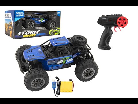 Auto RC buggy terénní modré 22cm plast 2,4GHz na baterie + dobíjecí pack v krabici 32x16x18cm
