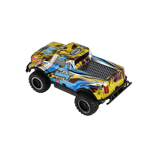Terénní autíčko na dálkové ovládání musí doma mít každý malý závodník. Tento kvalitní model terénního auta na dálkové ovládání jezdí všemi směry. Zajisté nadchne všechny automobilové fanoušky. Stačí šlápnout na plyn a dojet si pro vítězství! Balení obsahuje také dobíjecí pack. Baterie 2x AA (dálkové ovládání) nejsou součástí balení. Rozměry balení 26 x 11 x13 cm. Vhodné pro děti od 3 let.