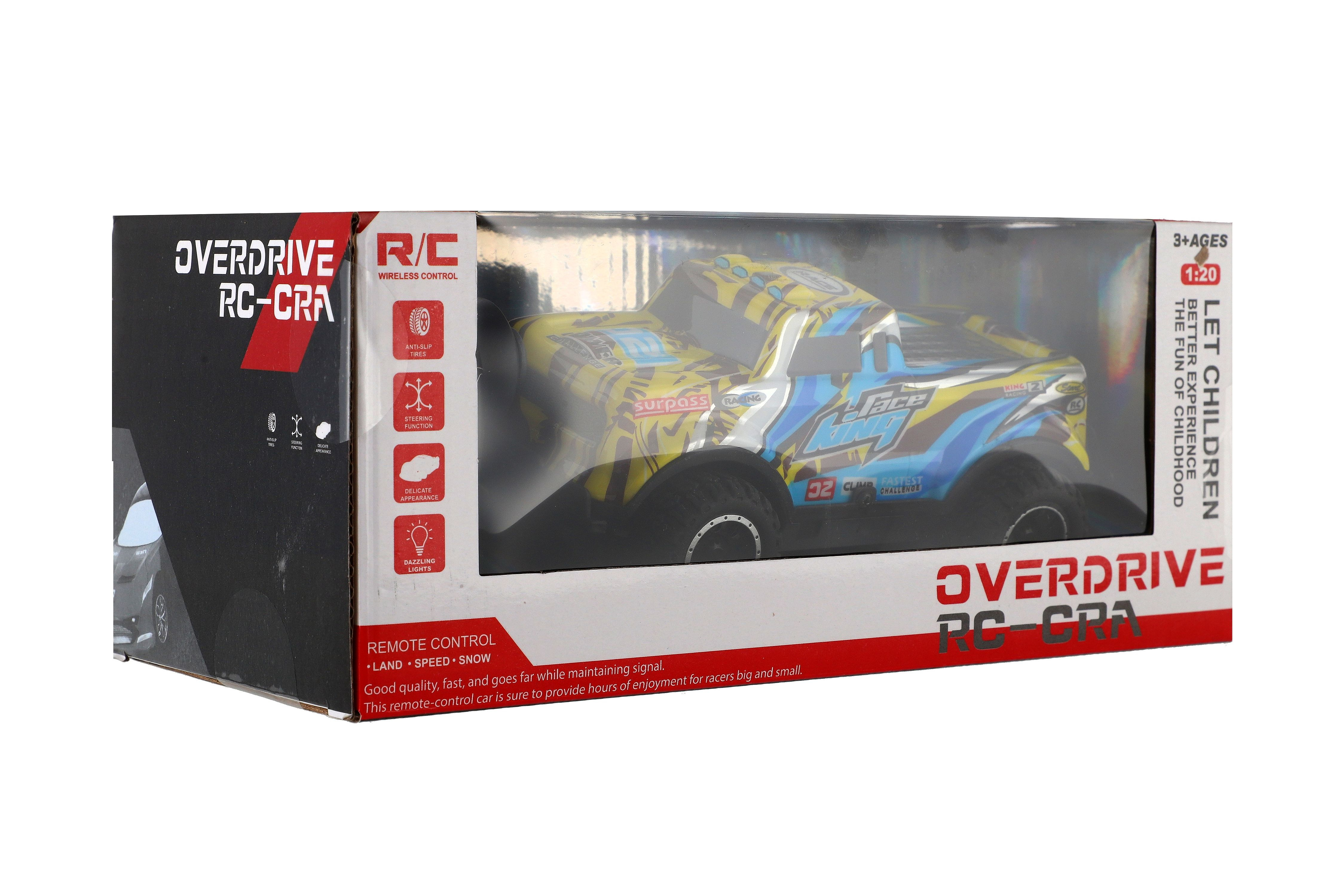 Terénní autíčko na dálkové ovládání musí doma mít každý malý závodník. Tento kvalitní model terénního auta na dálkové ovládání jezdí všemi směry. Zajisté nadchne všechny automobilové fanoušky. Stačí šlápnout na plyn a dojet si pro vítězství! Balení obsahuje také dobíjecí pack. Baterie 2x AA (dálkové ovládání) nejsou součástí balení. Rozměry balení 26 x 11 x13 cm. Vhodné pro děti od 3 let.