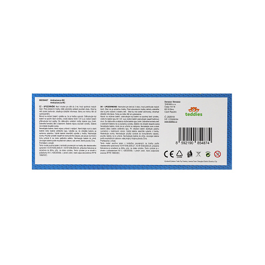 Nastartujte sanitku a vyražte zachraňovat lidské životy! Díky této RC sanitce budete všude viditelně a včas! Jezdí ve všech směrech a je na dálkové ovládání a samozřejmě svítí. Frekvence je 27 MHz. Baterie nejsou součástí balení. Rozměr auta: 20 cm Rozměr krabice: 28 x 13 x 11 cm Vhodné pro děti od 3 let