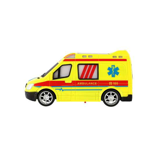 Auto RC ambulance plast 20cm na dálkové ovládání 27MHz na baterie se světlem v krabici 28x13x11cm