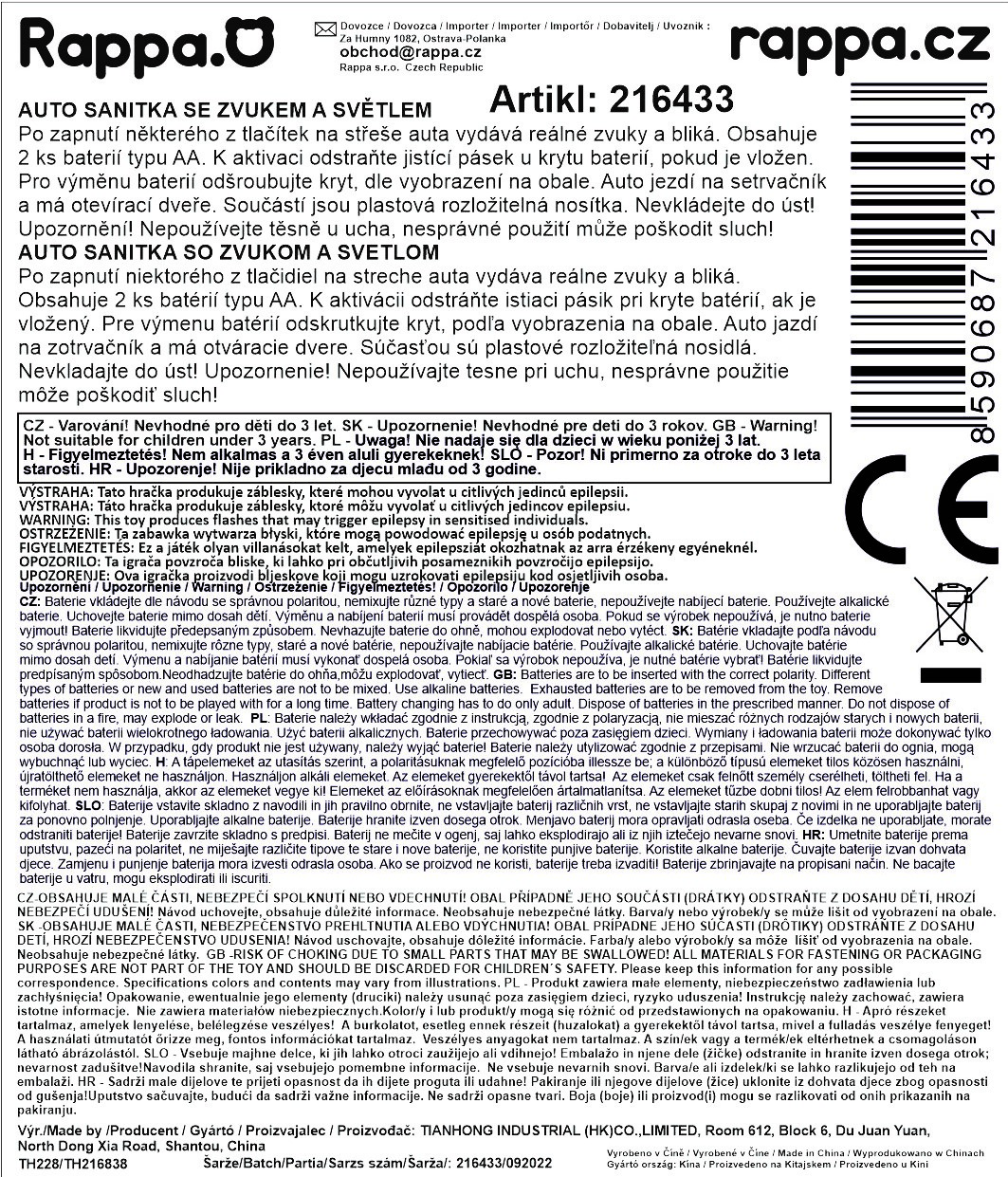 Rappa Auto sanitka se zvukem a světlem