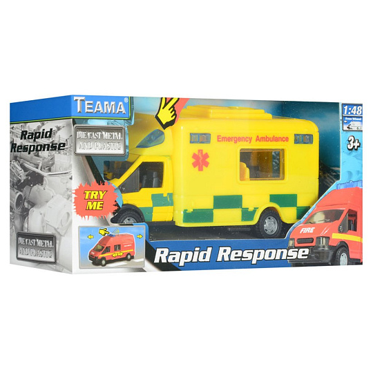 Kovové auto Rapid se zvukem v měřítku 1:48.
