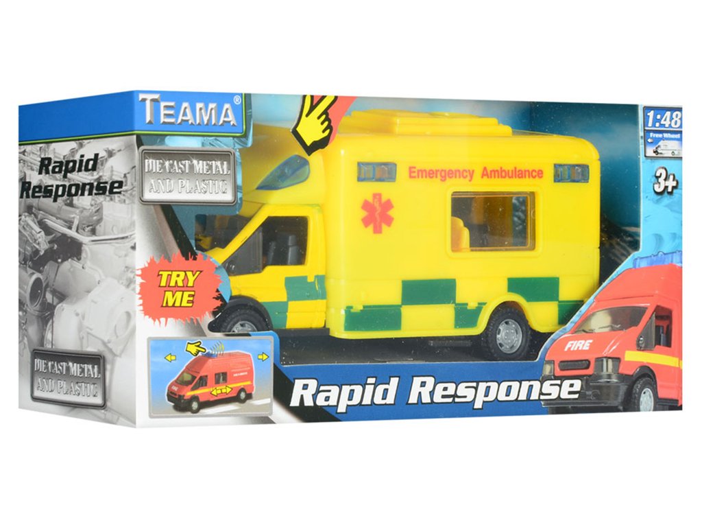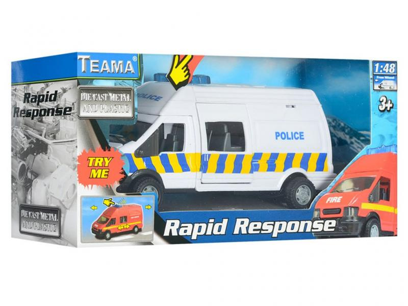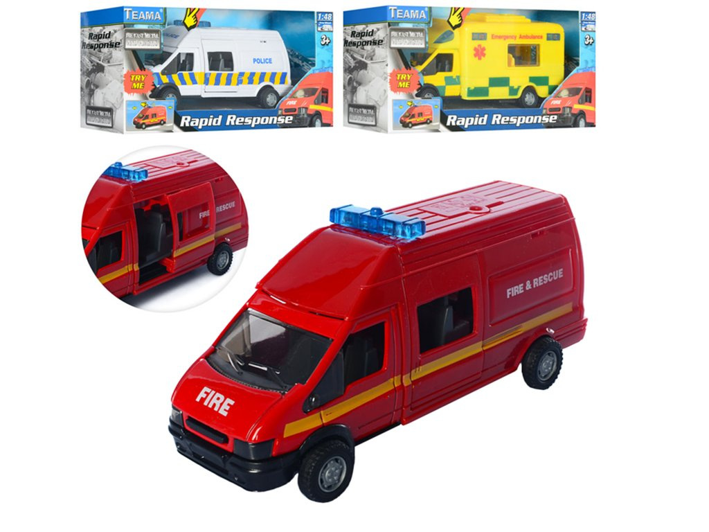 Kovové auto Rapid se zvukem v měřítku 1:48.