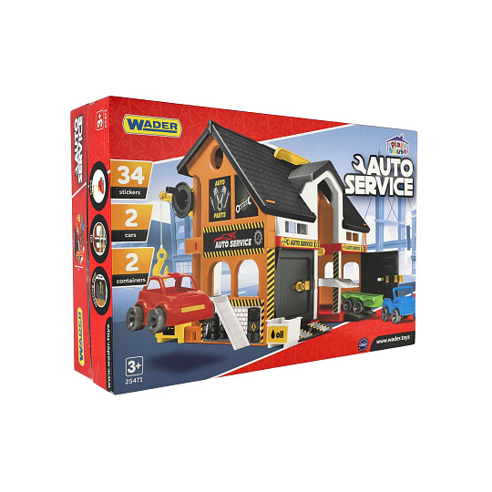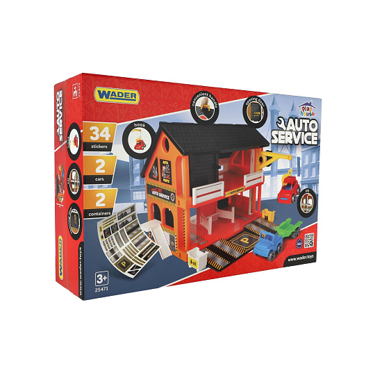 Auto servis 2 patra + 3 auta plast v krabici 59x39x15cm Wader