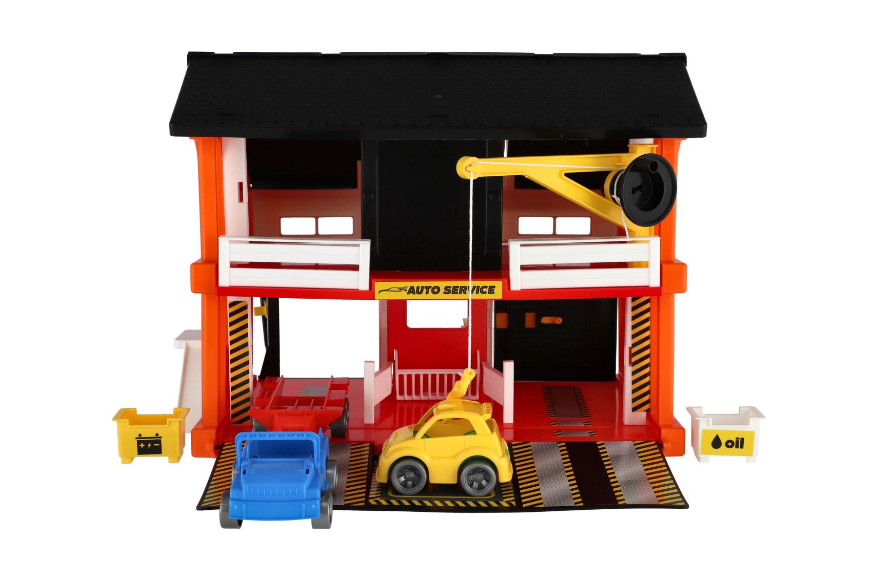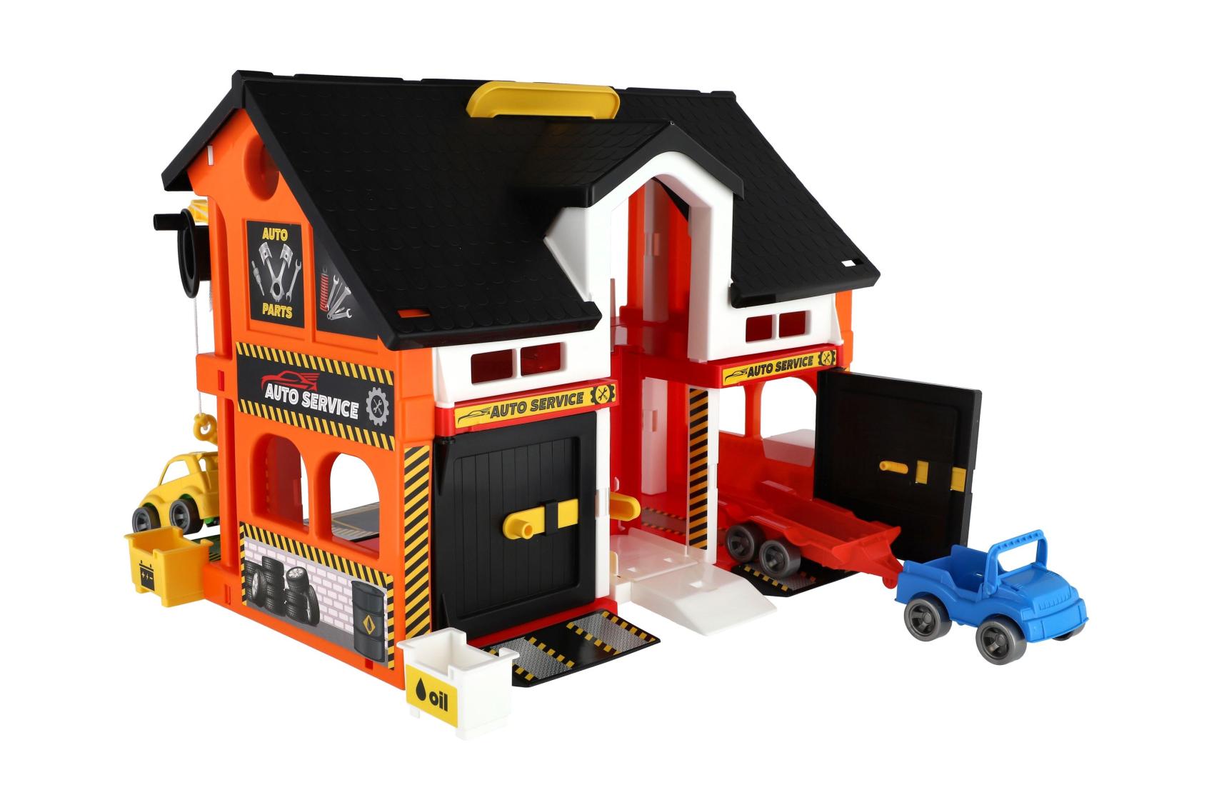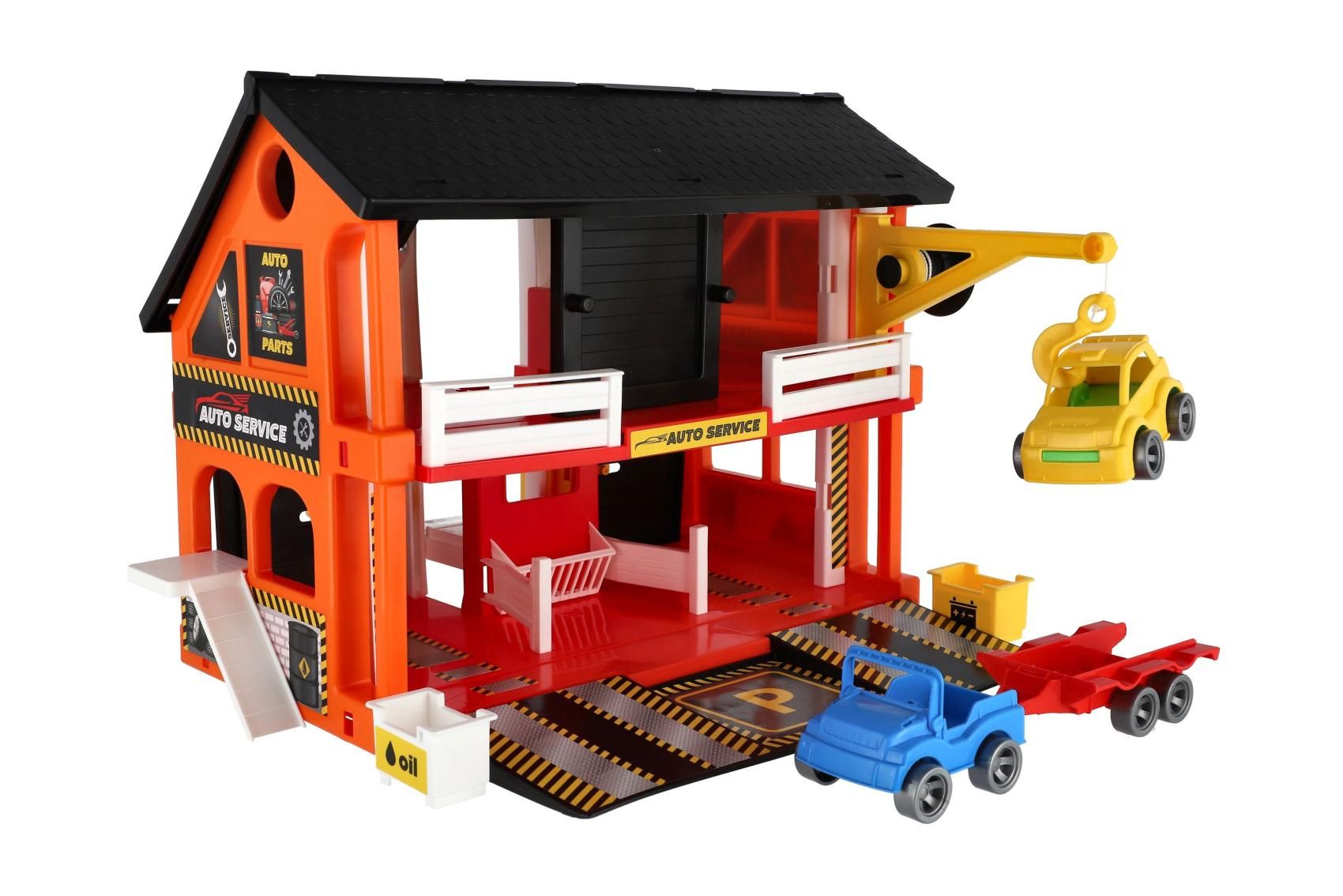 Auto servis 2 patra + 3 auta plast v krabici 59x39x15cm Wader