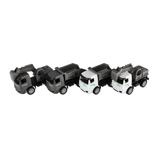 Parádní sada stavebních autíček potěší každého malého stavitele. Obsahuje 2 plastová vozidla o délce 15 cm s pohonem na setrvačník – stačí zatlačit a pustit, a vozidla se rozjedou vpřed. Ideální na hraní doma, na pískovišti nebo na zahradě. Rozměry balení 23 x 25 x 6 cm Vhodné pro děti od 3 let