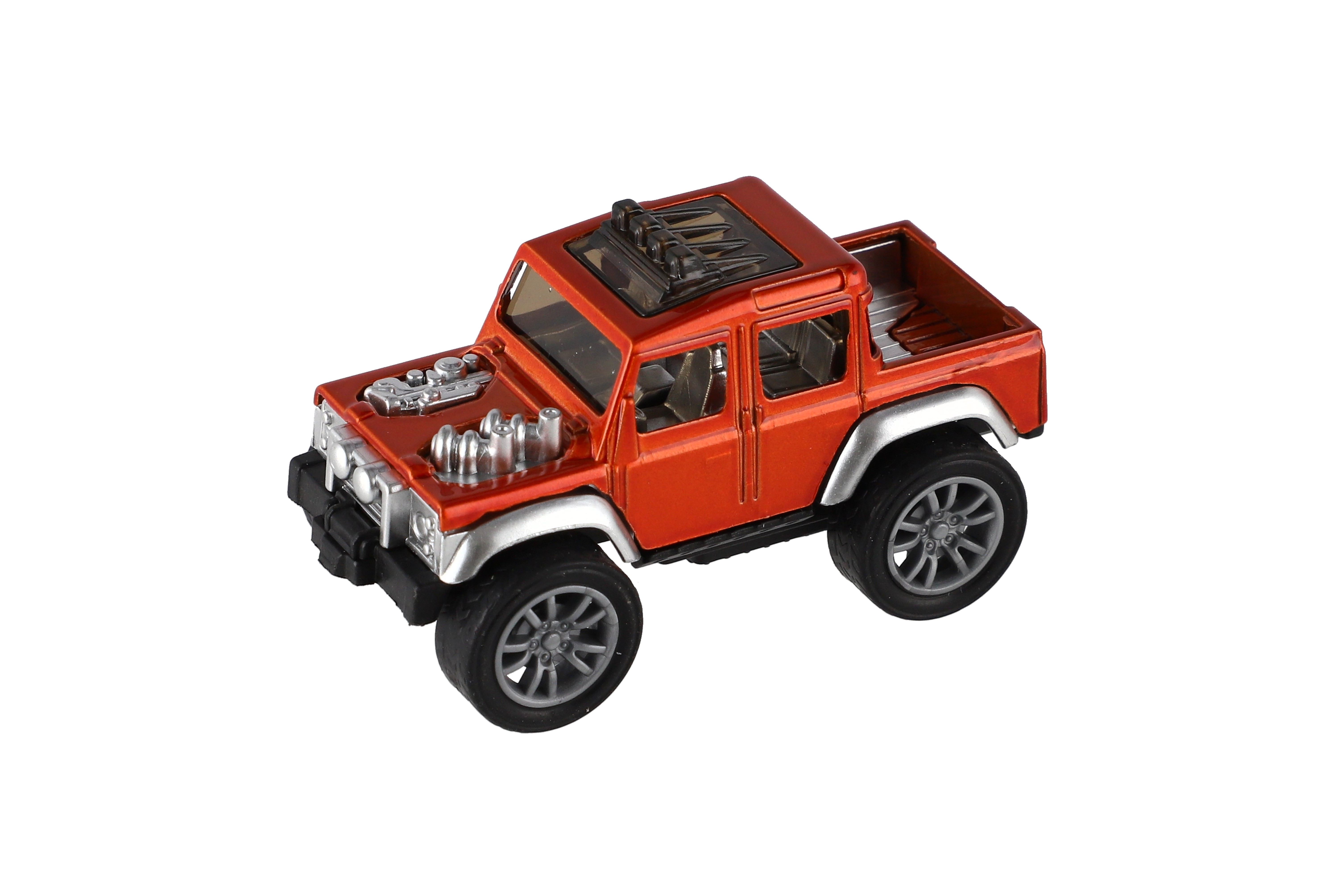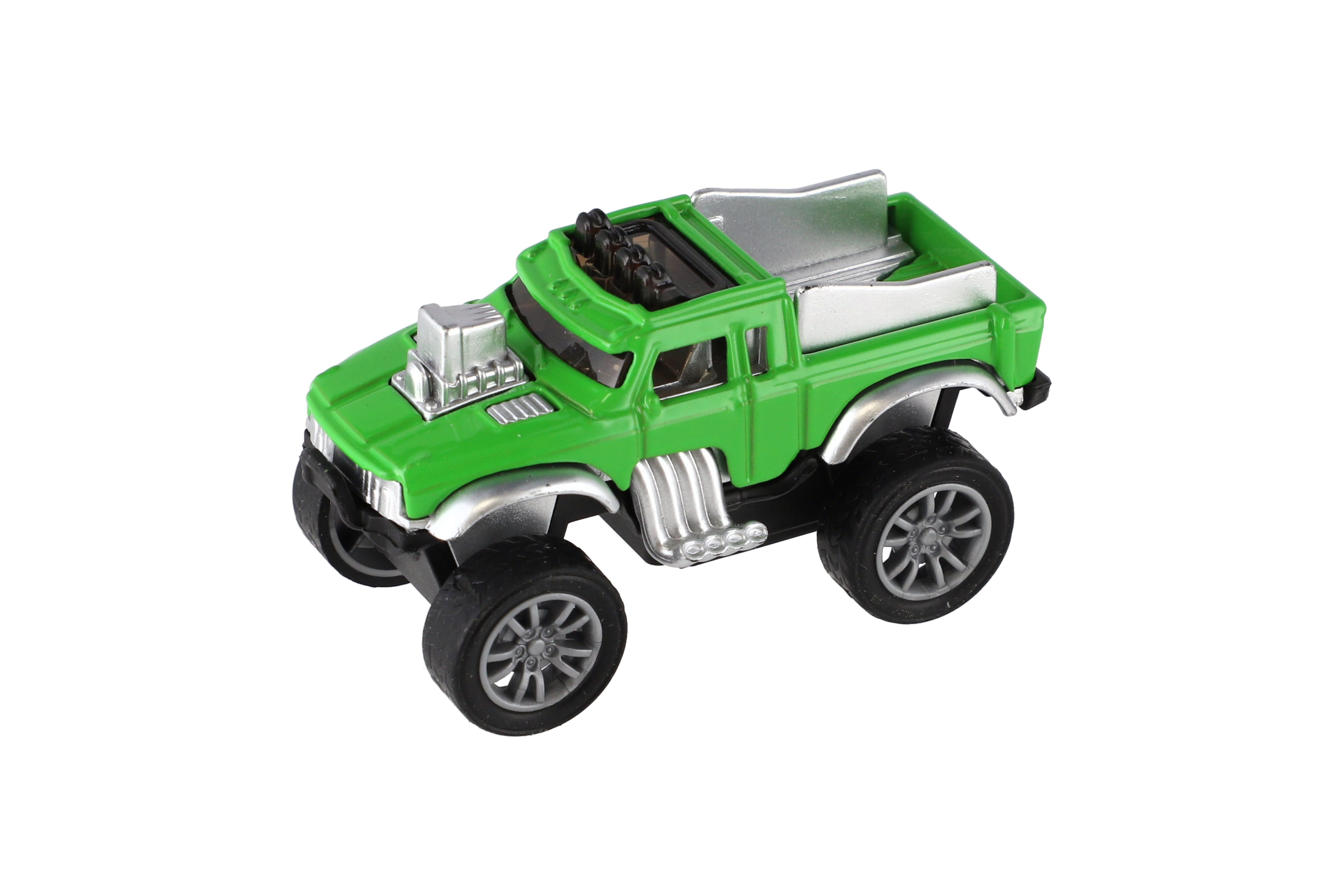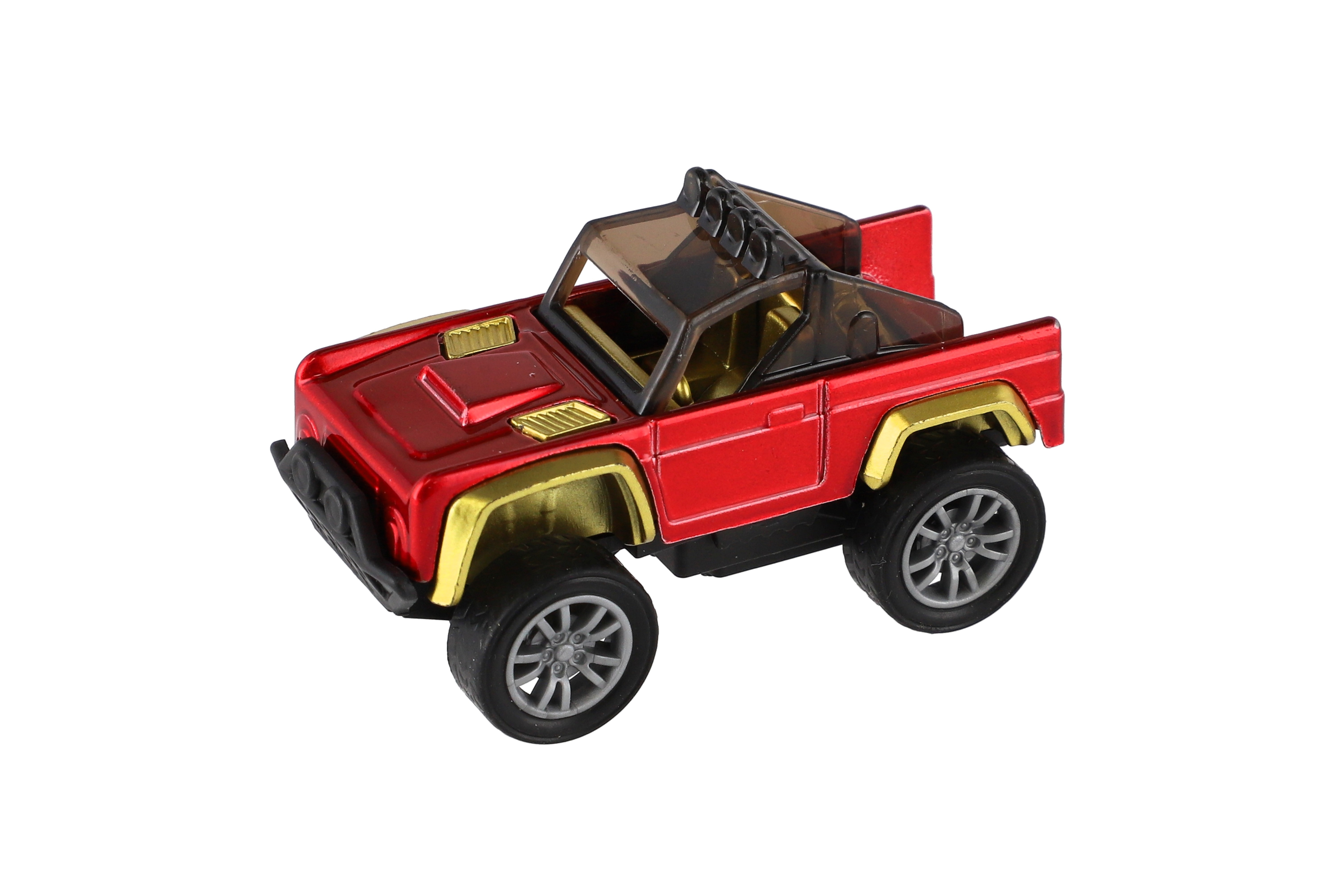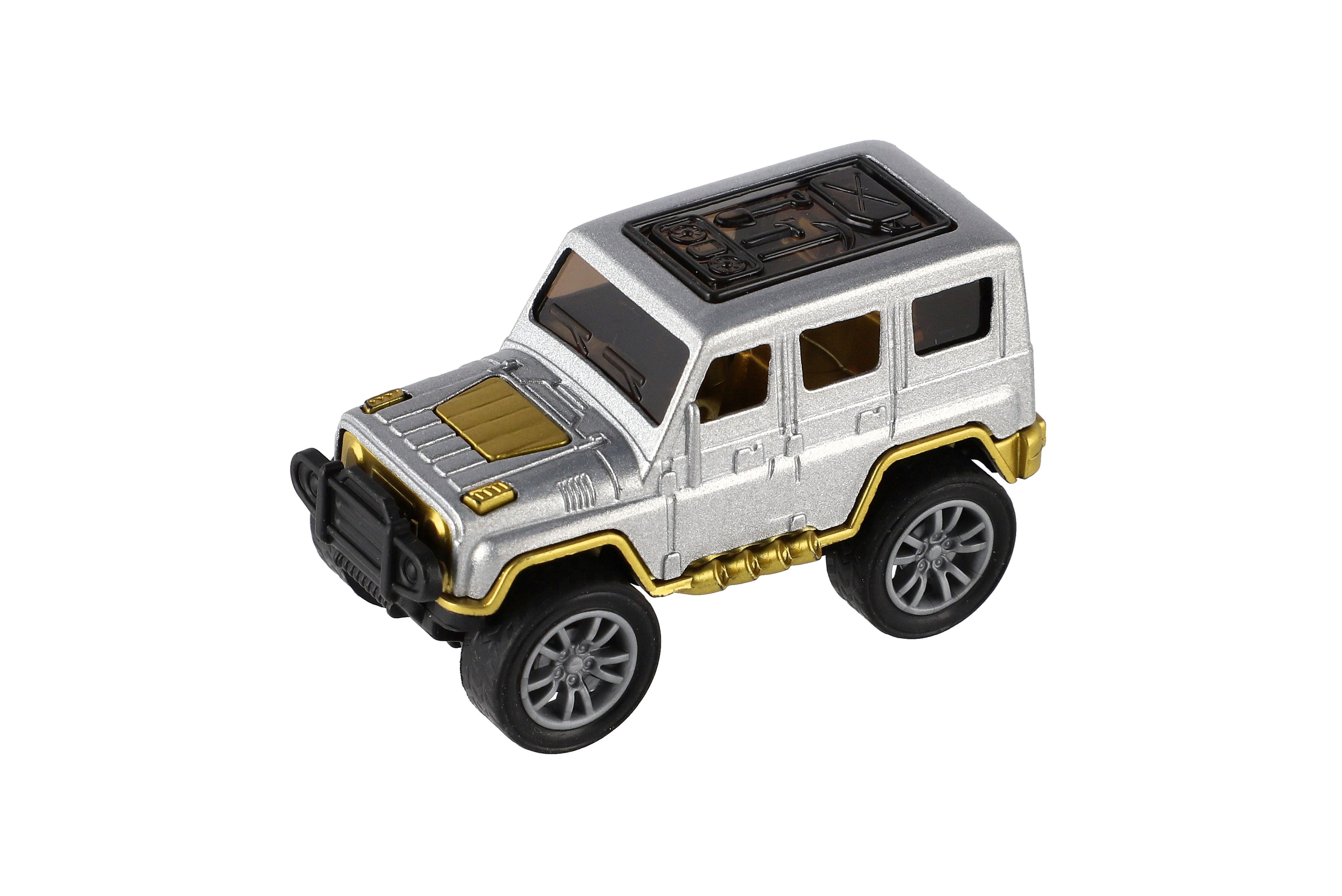 Malý, ale robustní model terénního auta ve stylu off-road, který spojuje kovové a plastové části. Díky mechanismu zpětného natažení (pull-back) se autíčko při natažení dozadu samo rozjede. Skvělá hračka pro malé milovníky akce a aut. Vhodné jako drobný dárek na hraní doma i na cestách. Velikost: 6,5 cm Vhodné pro děti od 3 let.