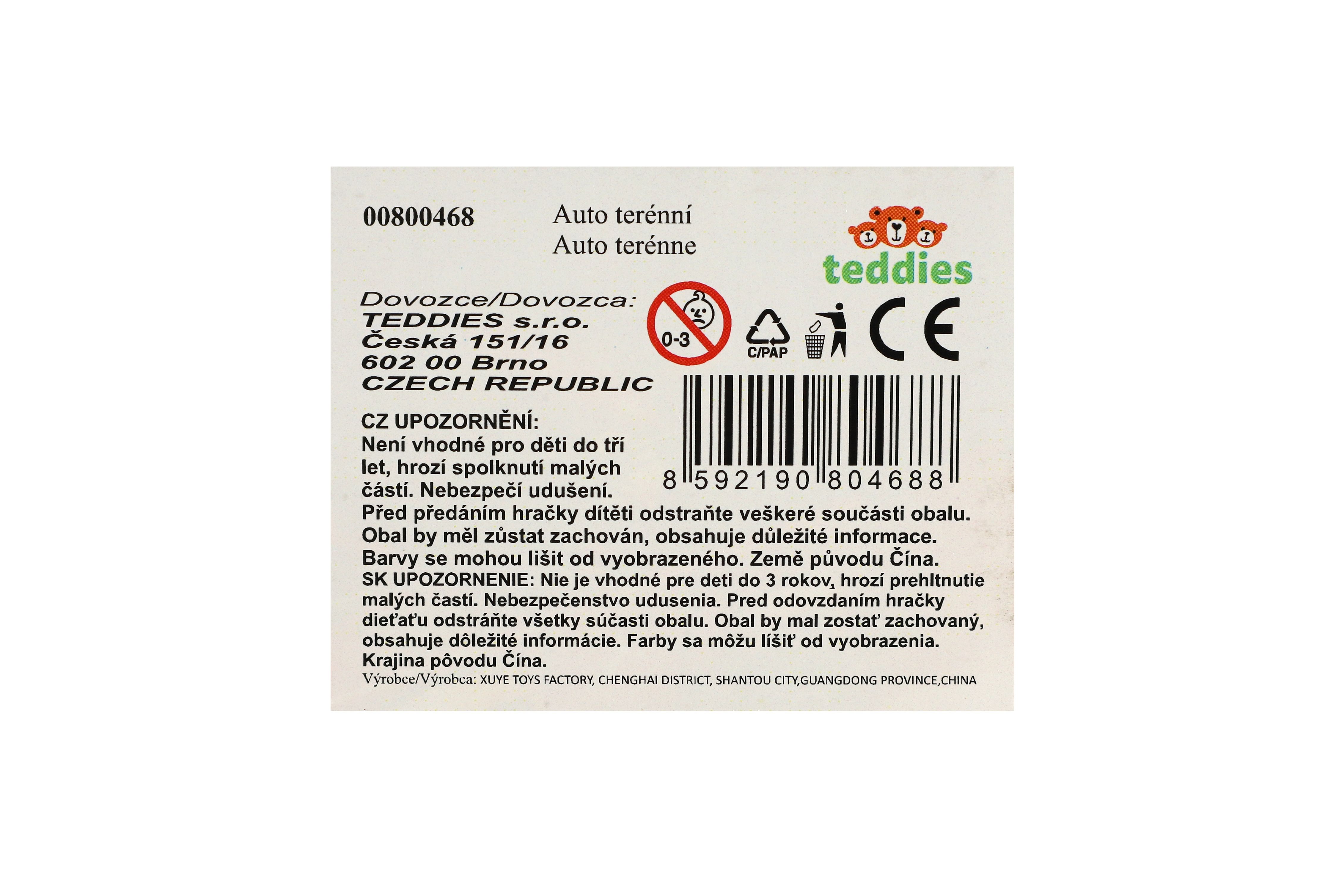 Teddies Auto terénní Off-Road mini kov/plast 6,5cm zpětné natažení mix druhů