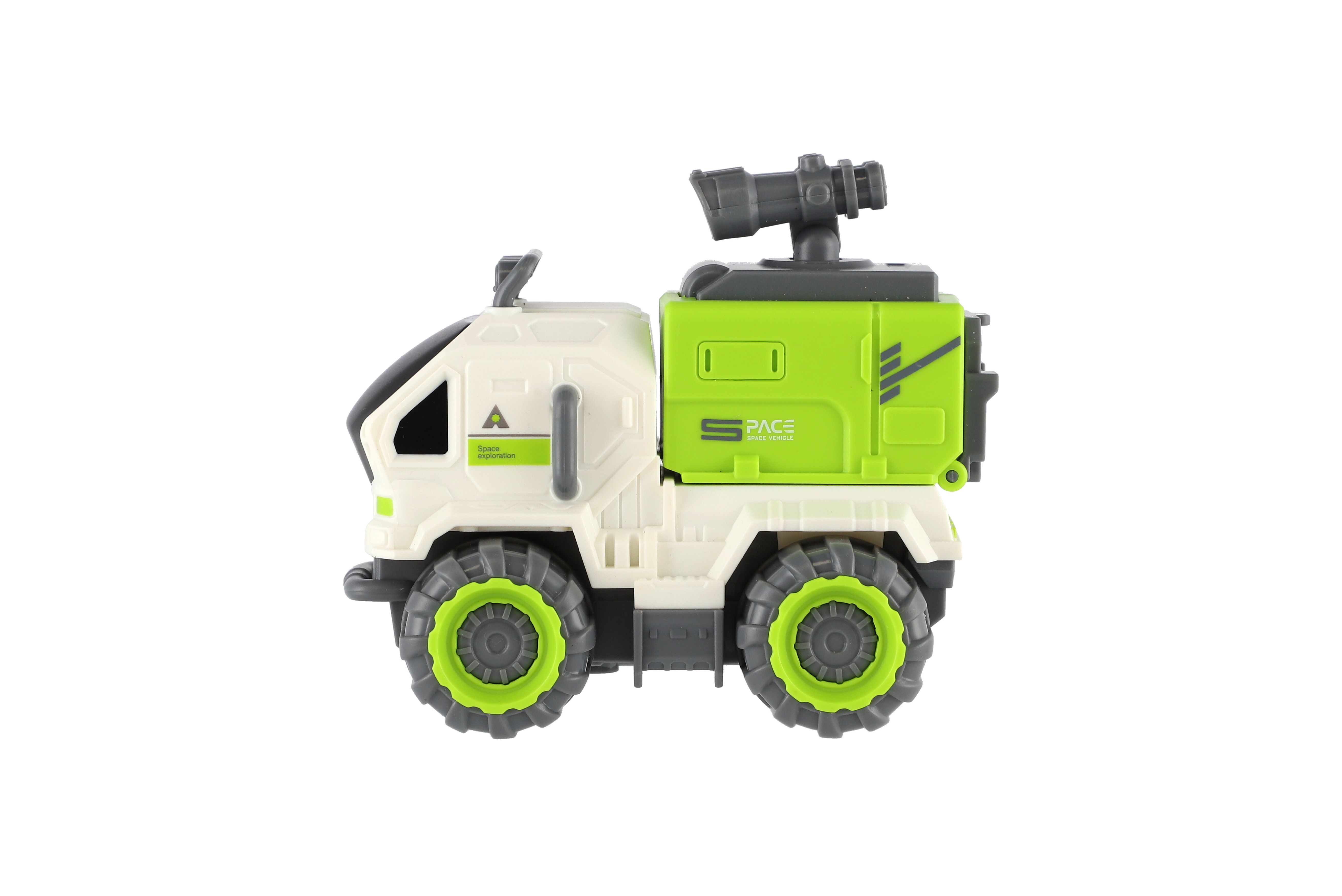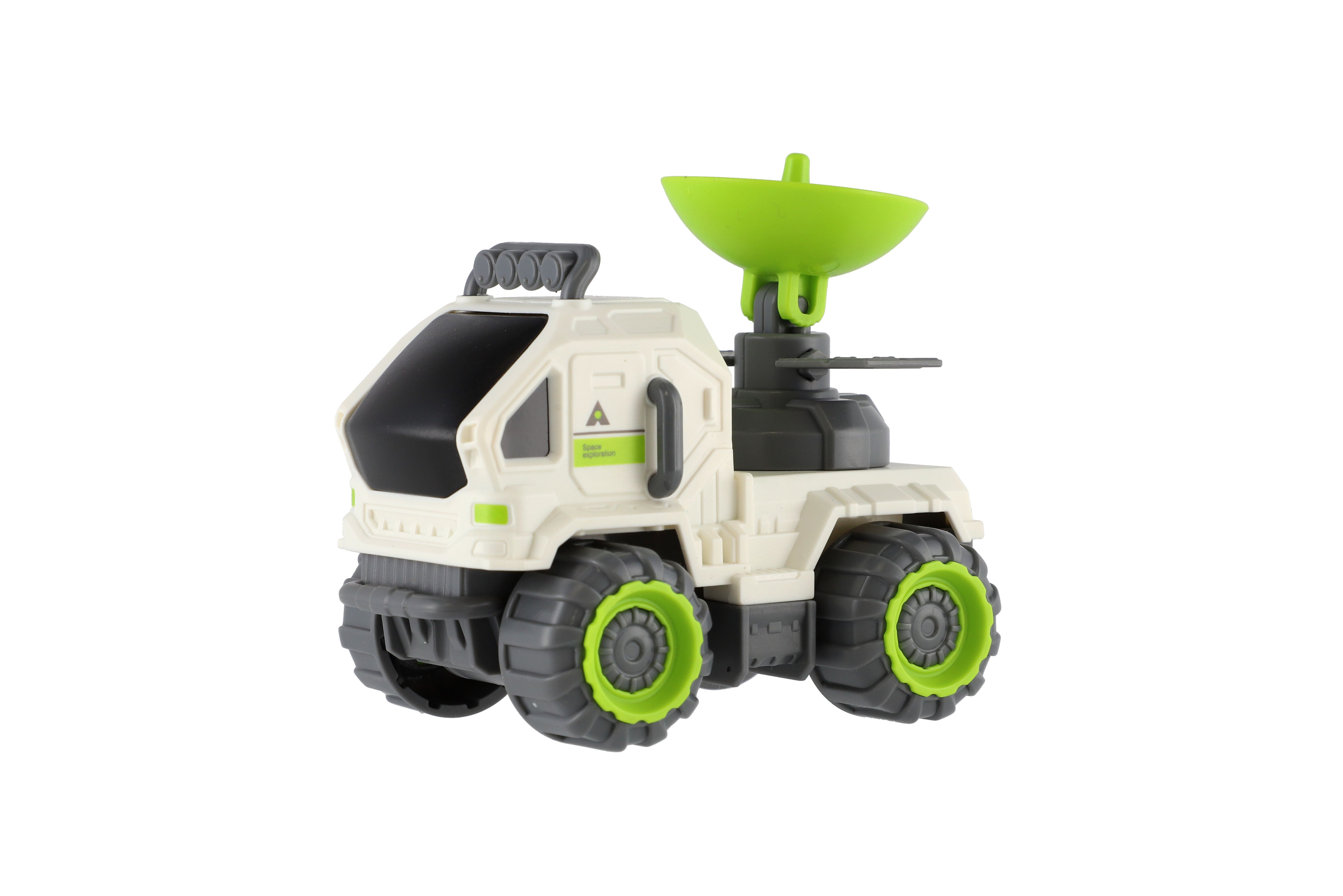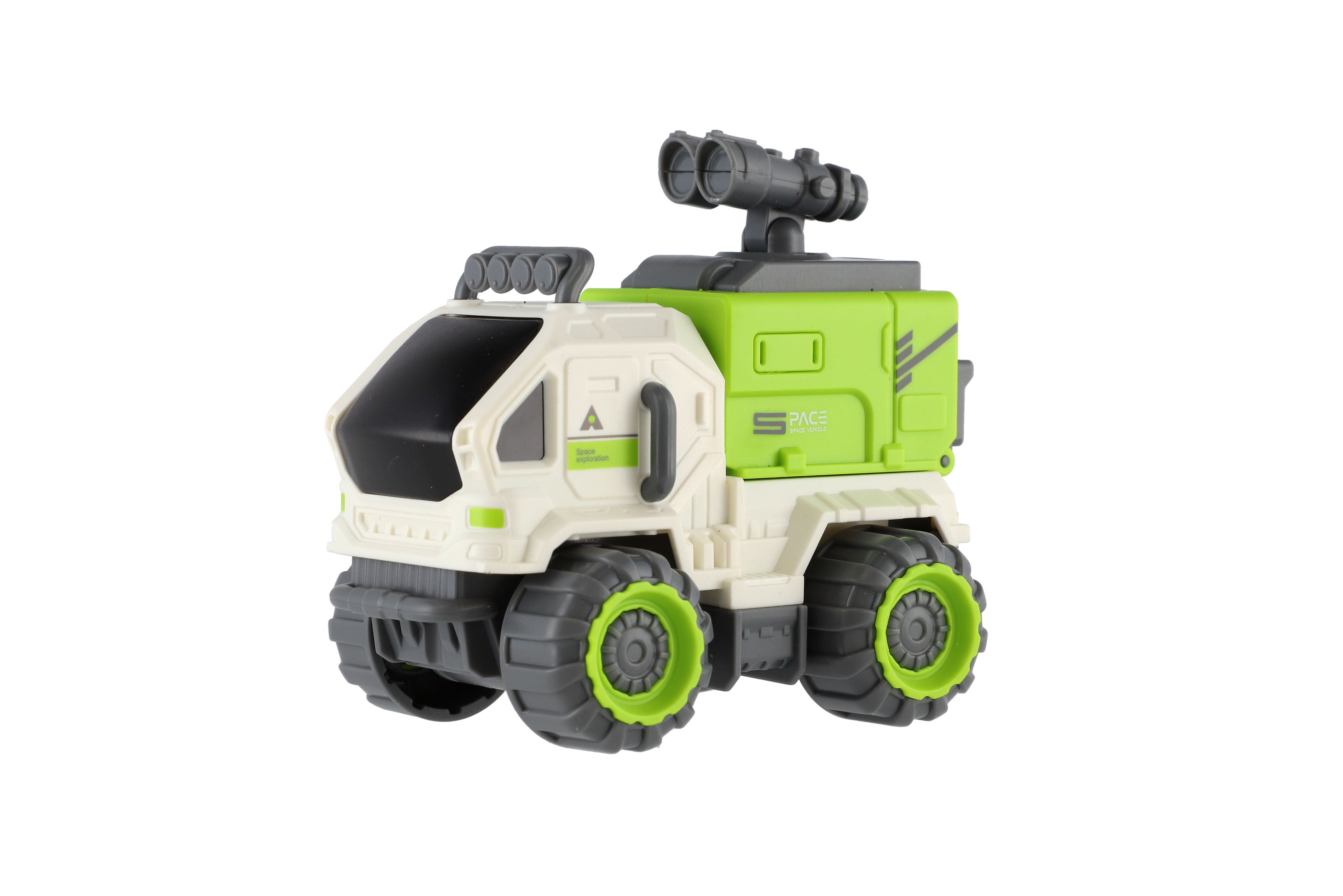 Hurá do vesmíru! Astronauti nepotřebuji jen raketu, vhod při prozkoumávání vesmírných planet a různých těles přijde i vesmírné auto. Auto frčí jako s větrem o závod díky setrvačníku, nepotřebuje pro svůj provoz žádné baterie. Rozměr auta: 7 x 10 cm Vhodné od 3 let