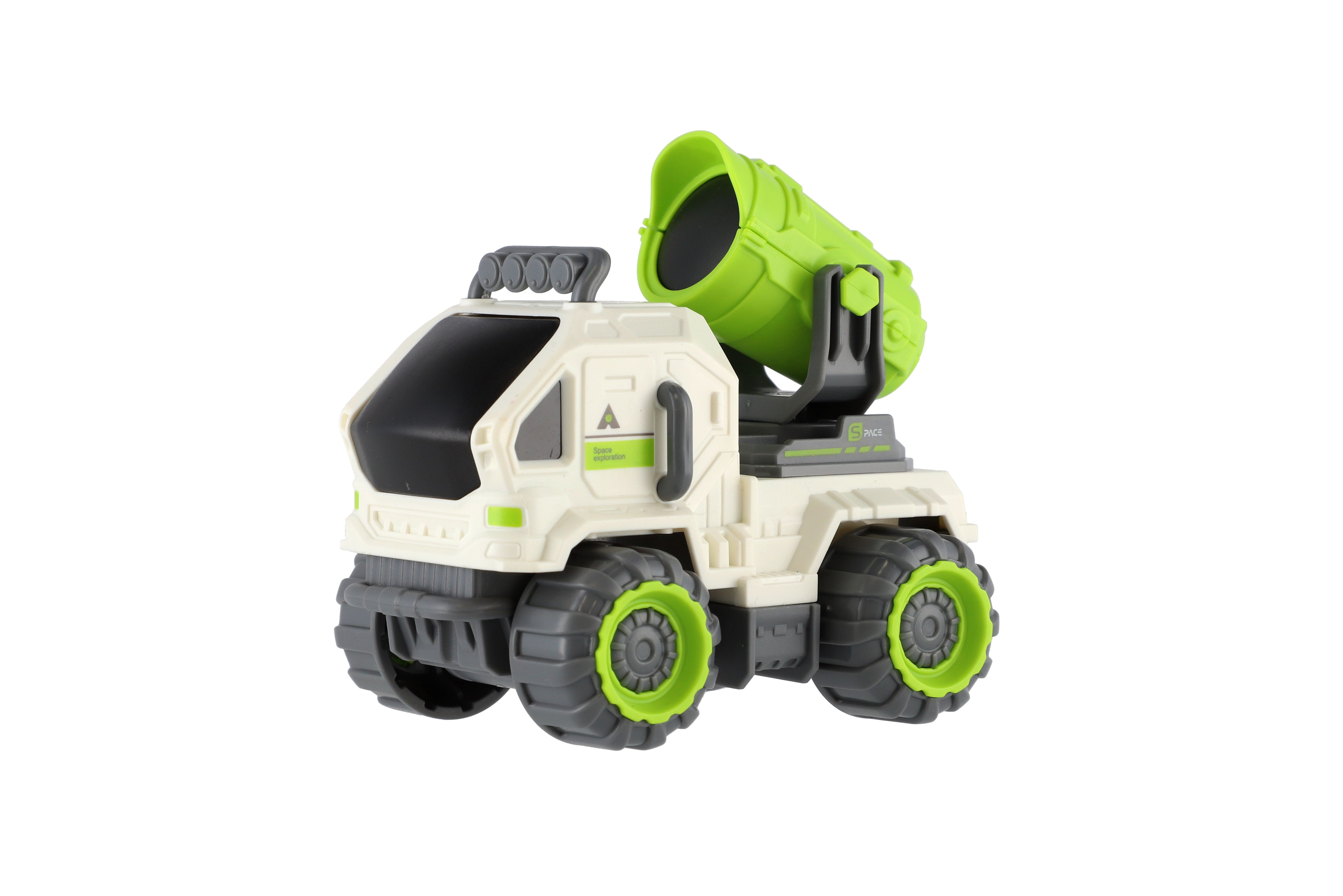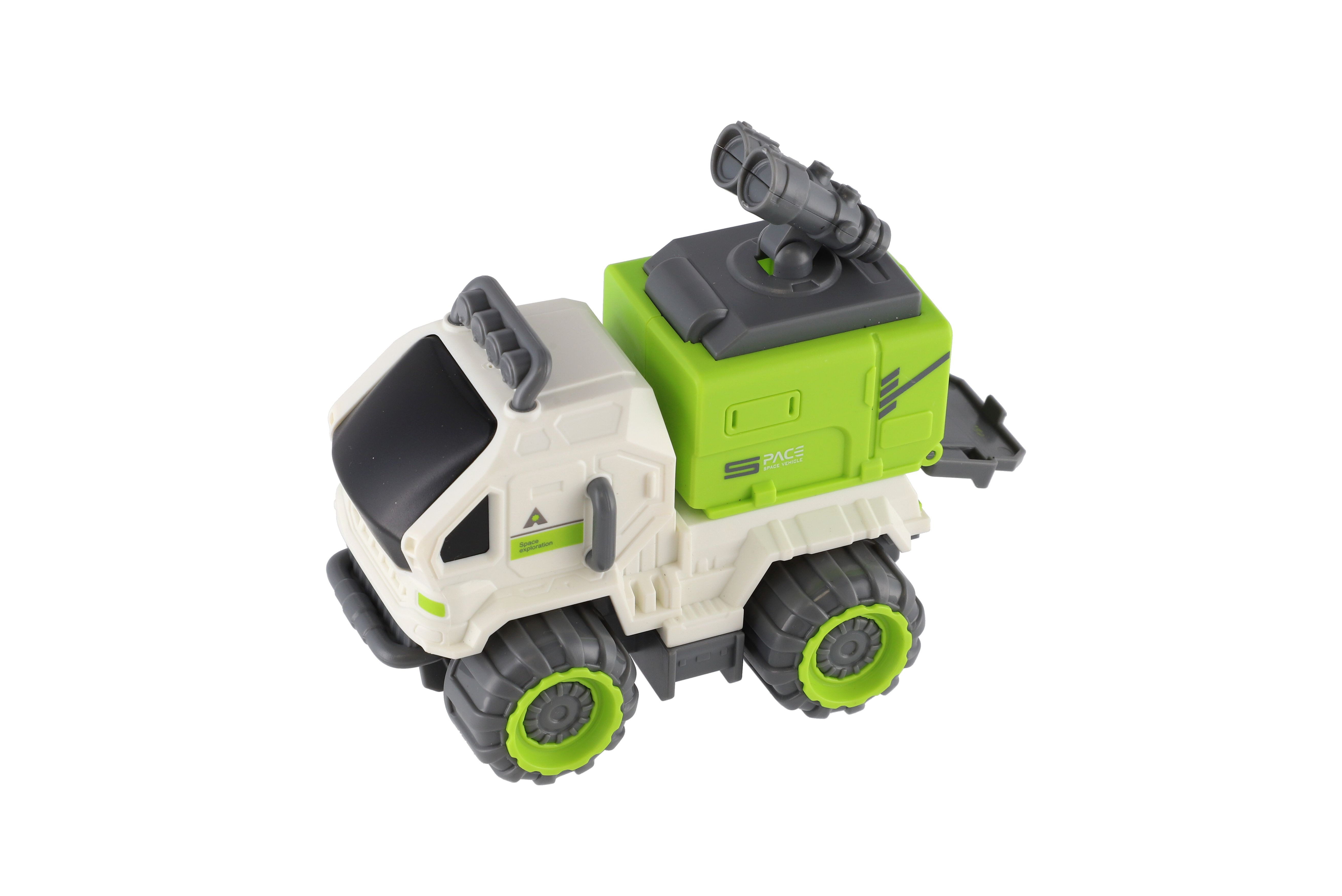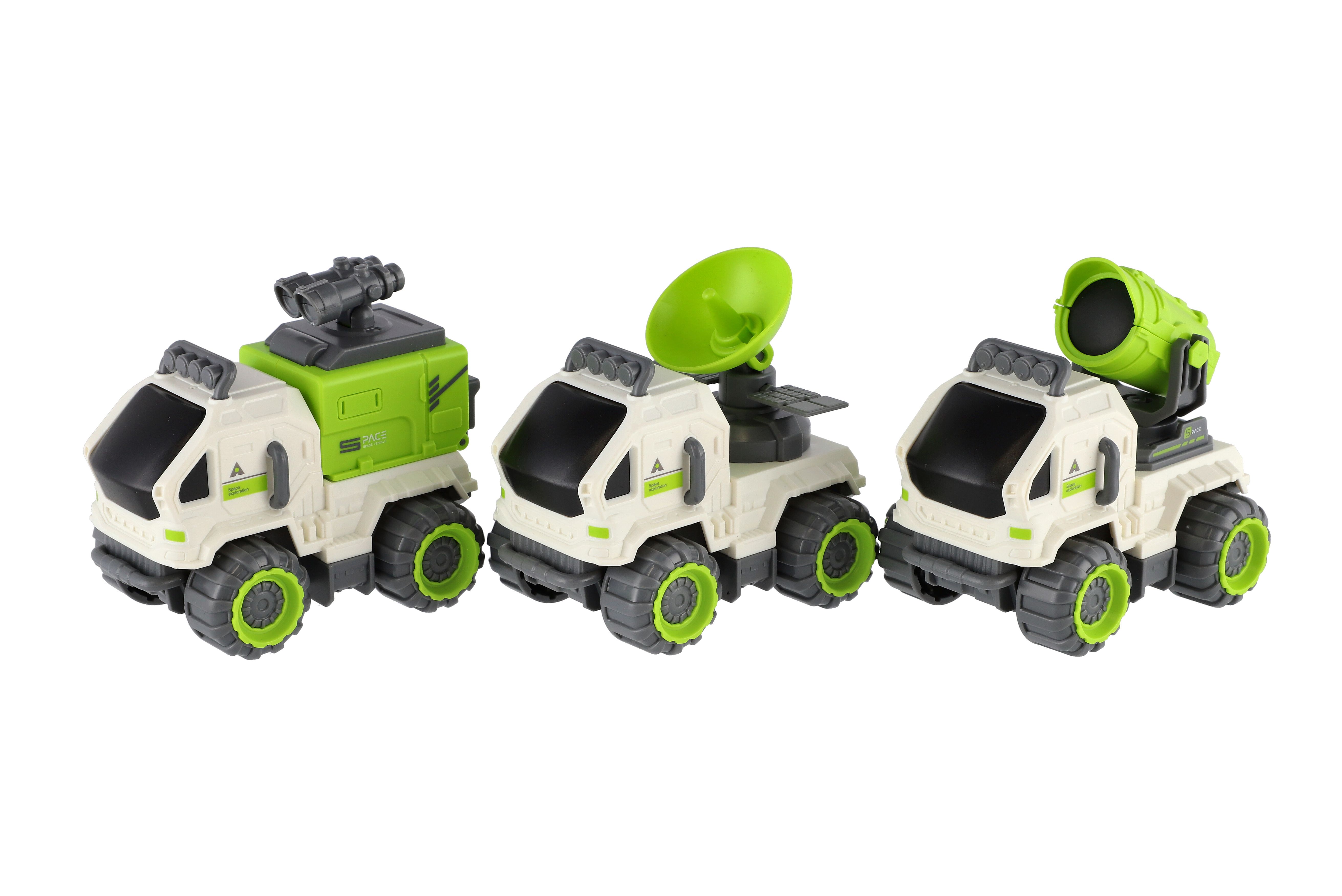 Hurá do vesmíru! Astronauti nepotřebuji jen raketu, vhod při prozkoumávání vesmírných planet a různých těles přijde i vesmírné auto. Auto frčí jako s větrem o závod díky setrvačníku, nepotřebuje pro svůj provoz žádné baterie. Rozměr auta: 7 x 10 cm Vhodné od 3 let