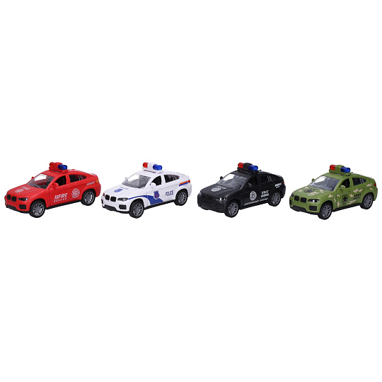 Auto záchranné. Rozměry 13x6x6 cm. Na setrvačník. Otevírací dveře a kufr. 12 ks display box. 4 varianty - hasiči, vojenské, policie-swat, policie-bílé.