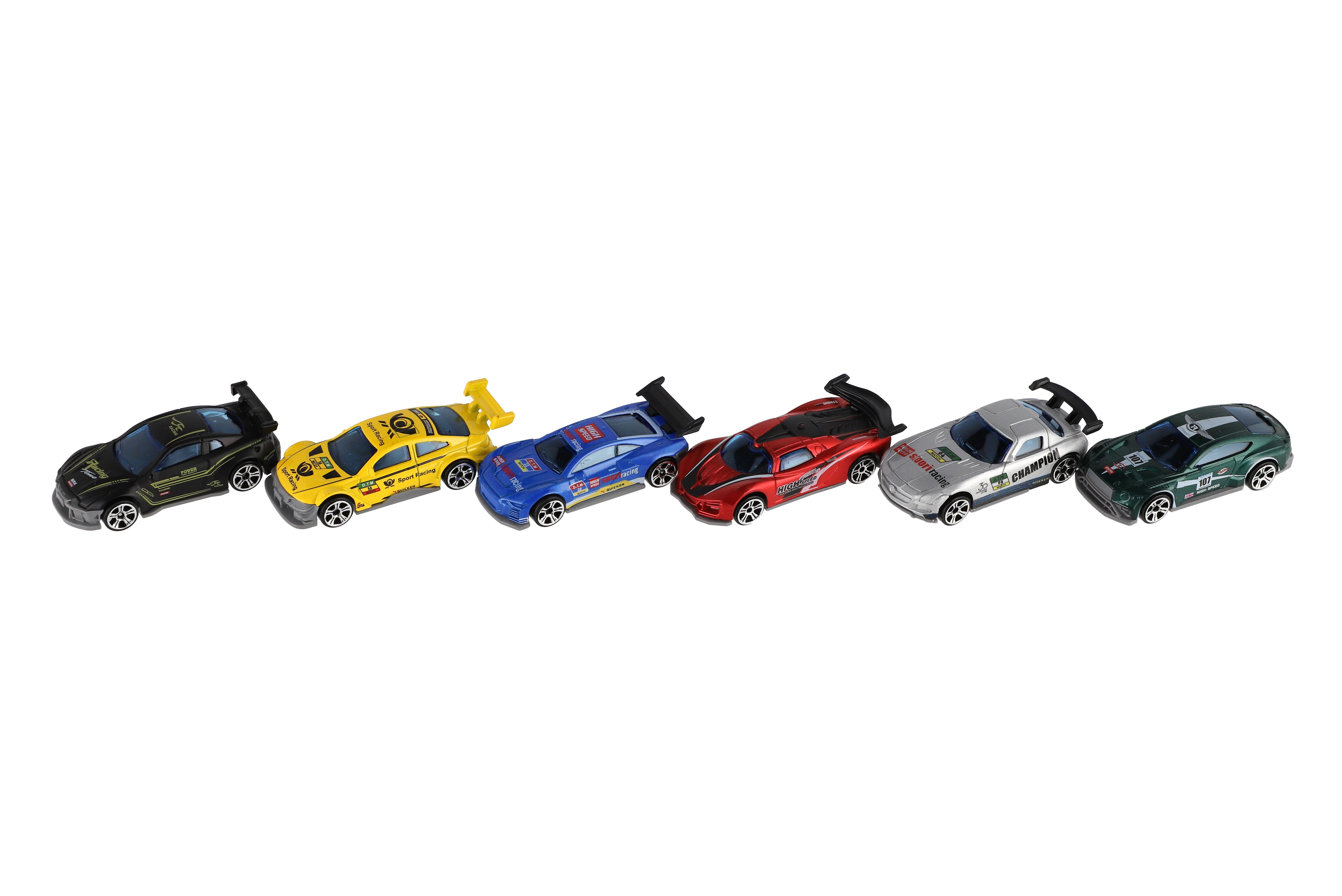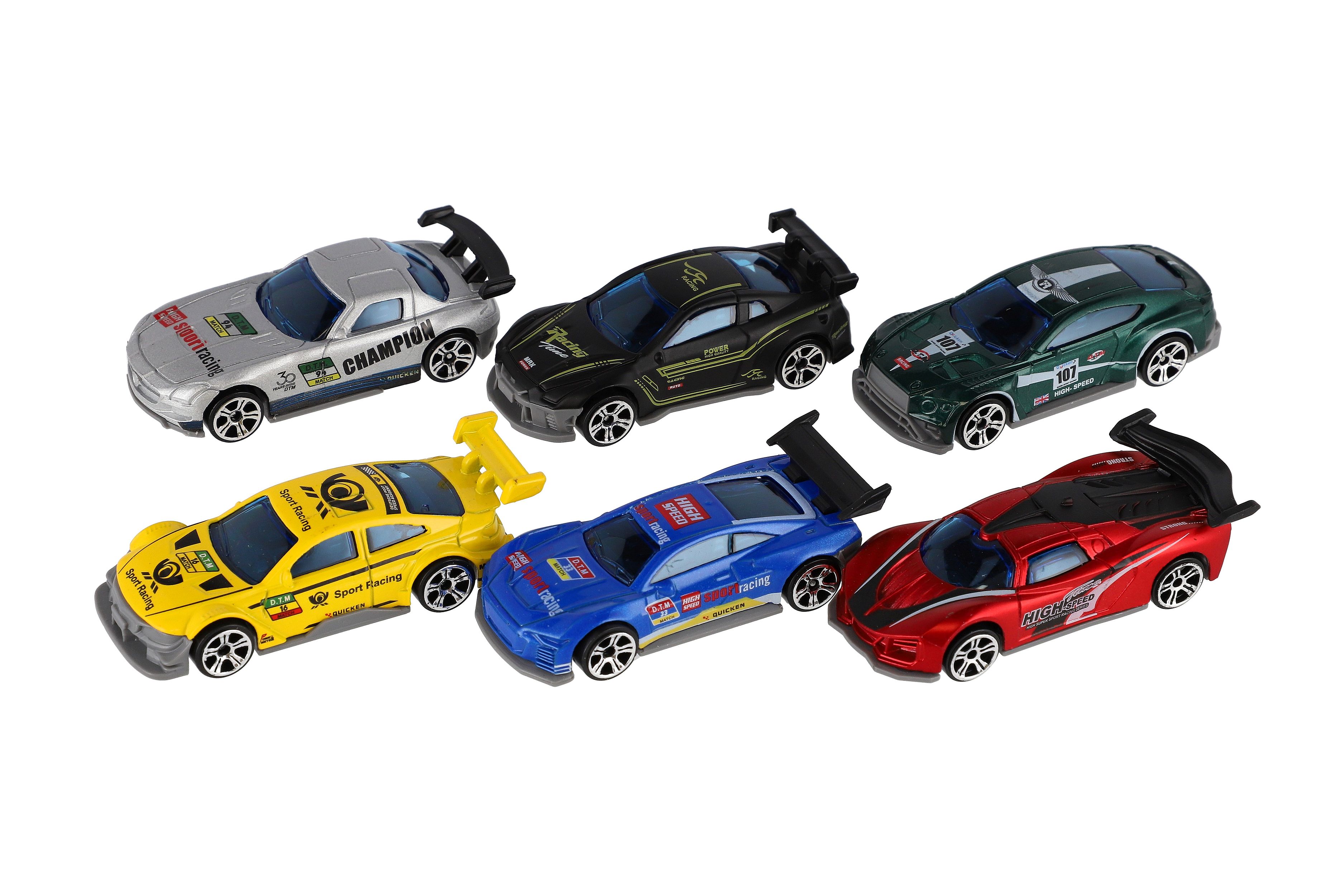 Auto závodní 6ks kov/plast 8cm na volný chod v krabičce 10,5x27x4cm