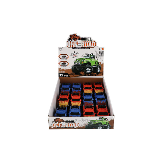 Auto terénní Off-Road plast 10cm oboustranné zpětné natažení 2 barvy 12ks v boxu