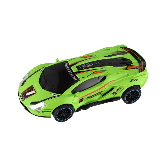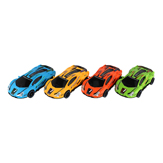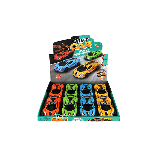 Závodní autíčko na setrvačník driftovací, tedy kontrolované smyky a klouzání bokem. Má speciální pneumatiky s nízkou trakcí a upravený podvozek pro lepší ovladatelnost při smycích. Rozměry výrobku 16 x 8 x 4 cm. Vhodné pro děti od 3 let.