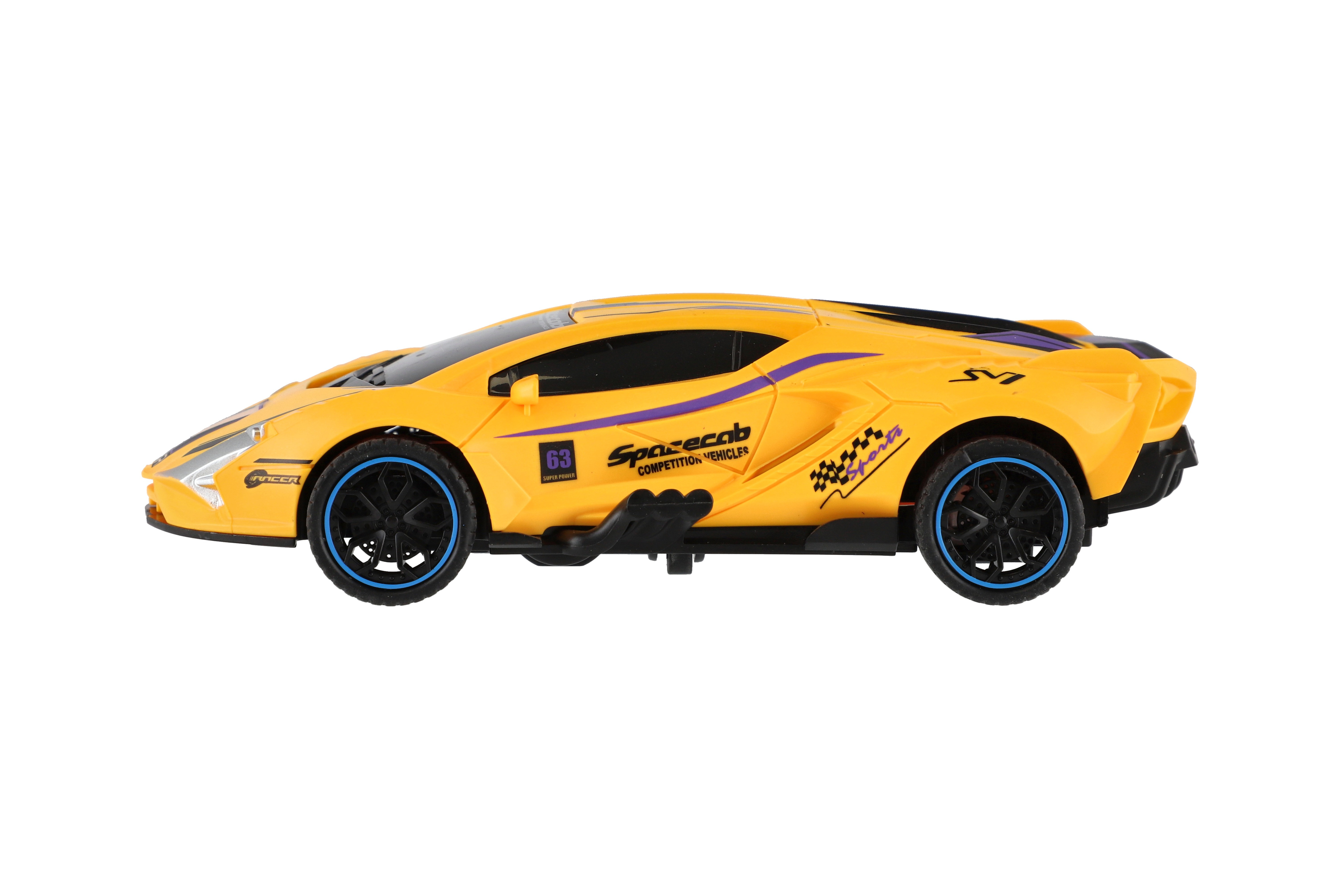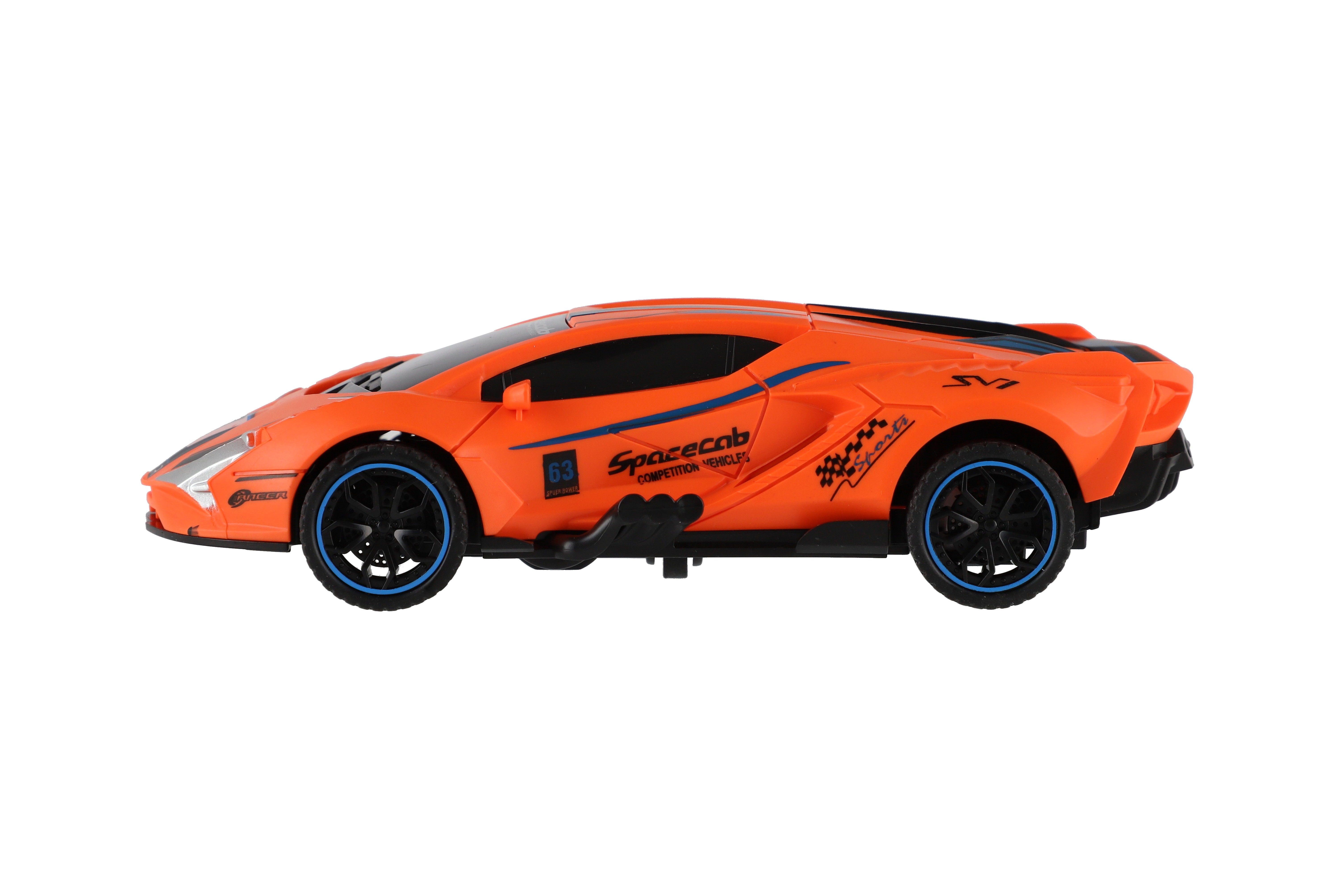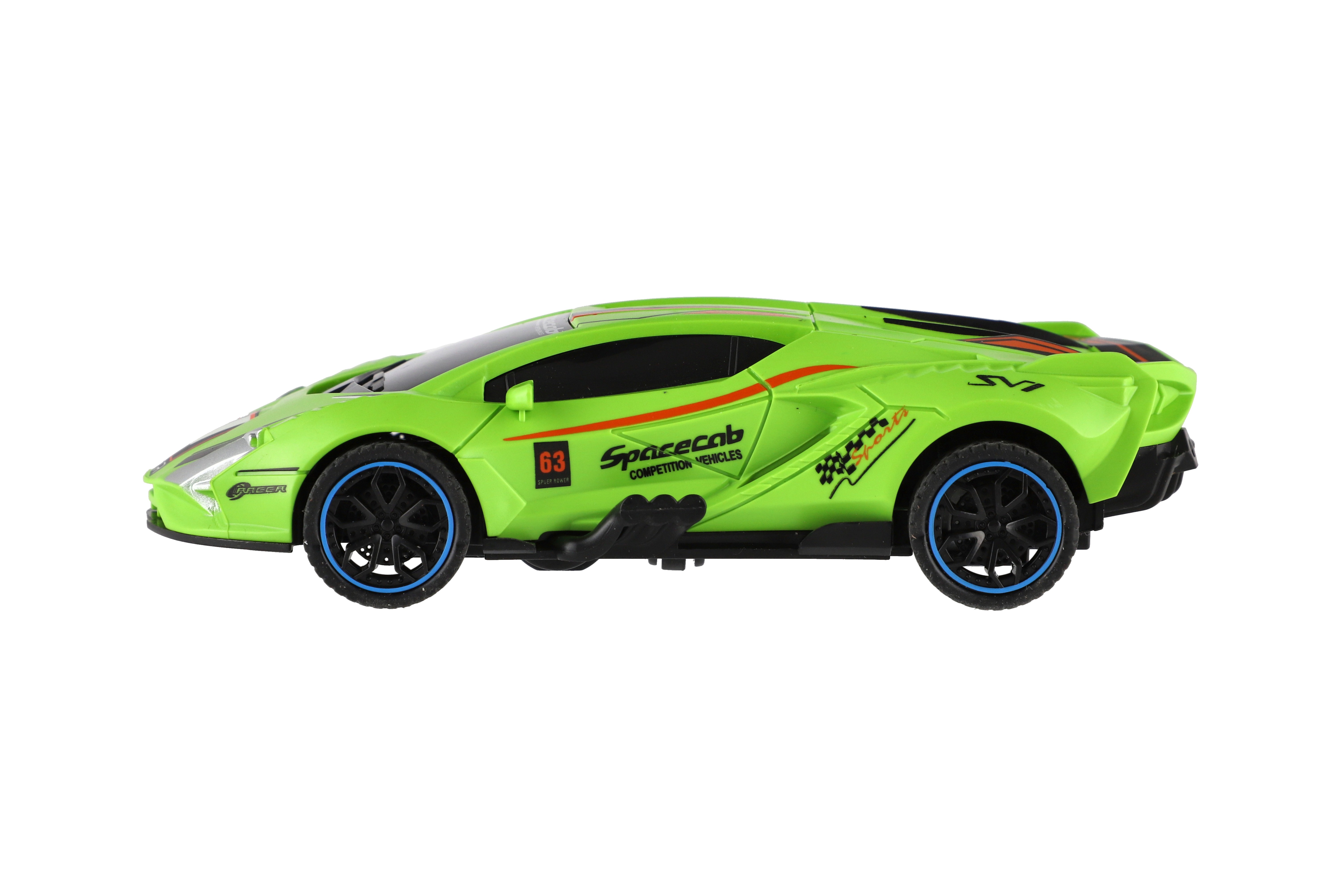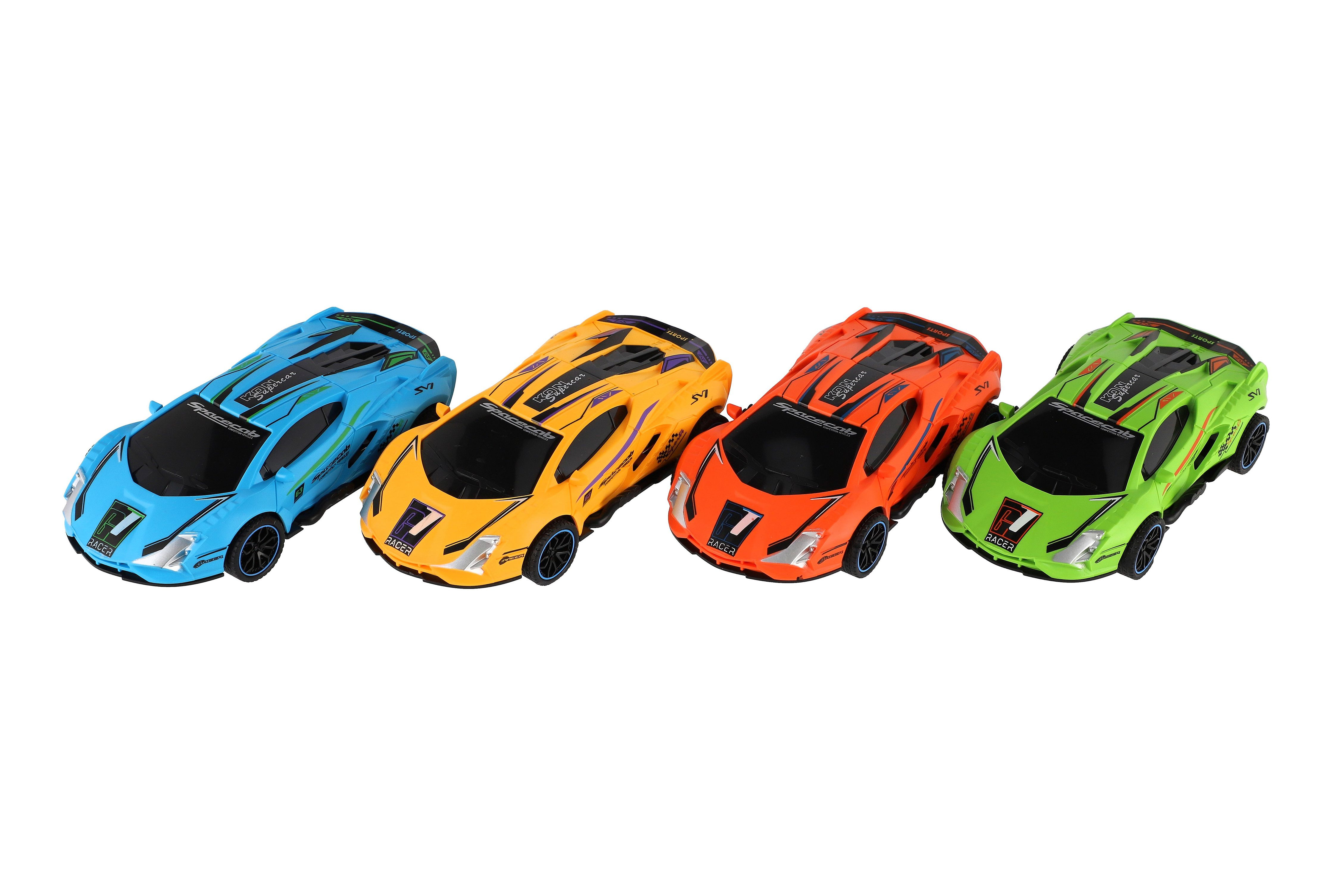 Závodní autíčko na setrvačník driftovací, tedy kontrolované smyky a klouzání bokem. Má speciální pneumatiky s nízkou trakcí a upravený podvozek pro lepší ovladatelnost při smycích. Rozměry výrobku 16 x 8 x 4 cm. Vhodné pro děti od 3 let.