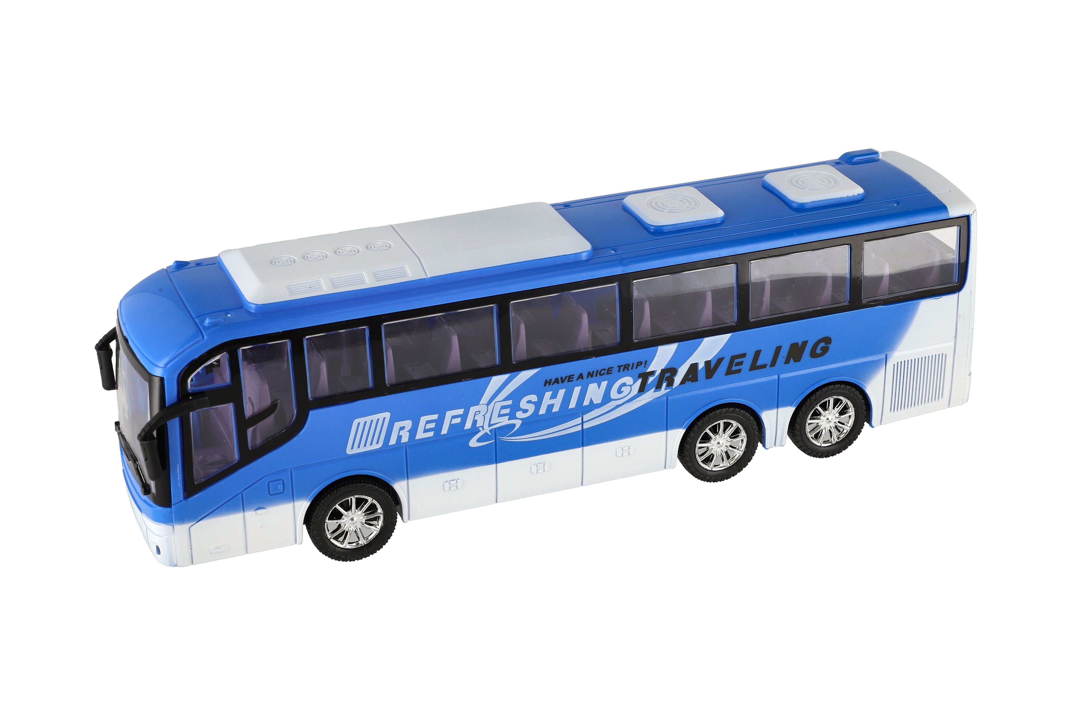 Autobus dálkový plast 31cm na setrvačník 2 barvy v blistru