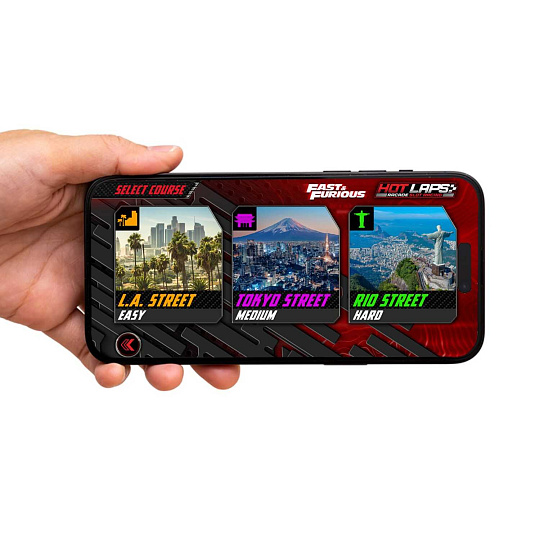 Není třeba extra hardware a je plně kompatibilní se stávajícími tratěmi a vozy. Jednoduše umístěte své chytré zařízení na kartonovou závodní portál a vyberte preferovaný režim závodu. Kamera na zařízení používá detekci pohybu, takže když se auto přiblíží pod portálem, aplikace počítá kolo. Je to super snadné a spoustu zábavy!
