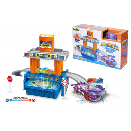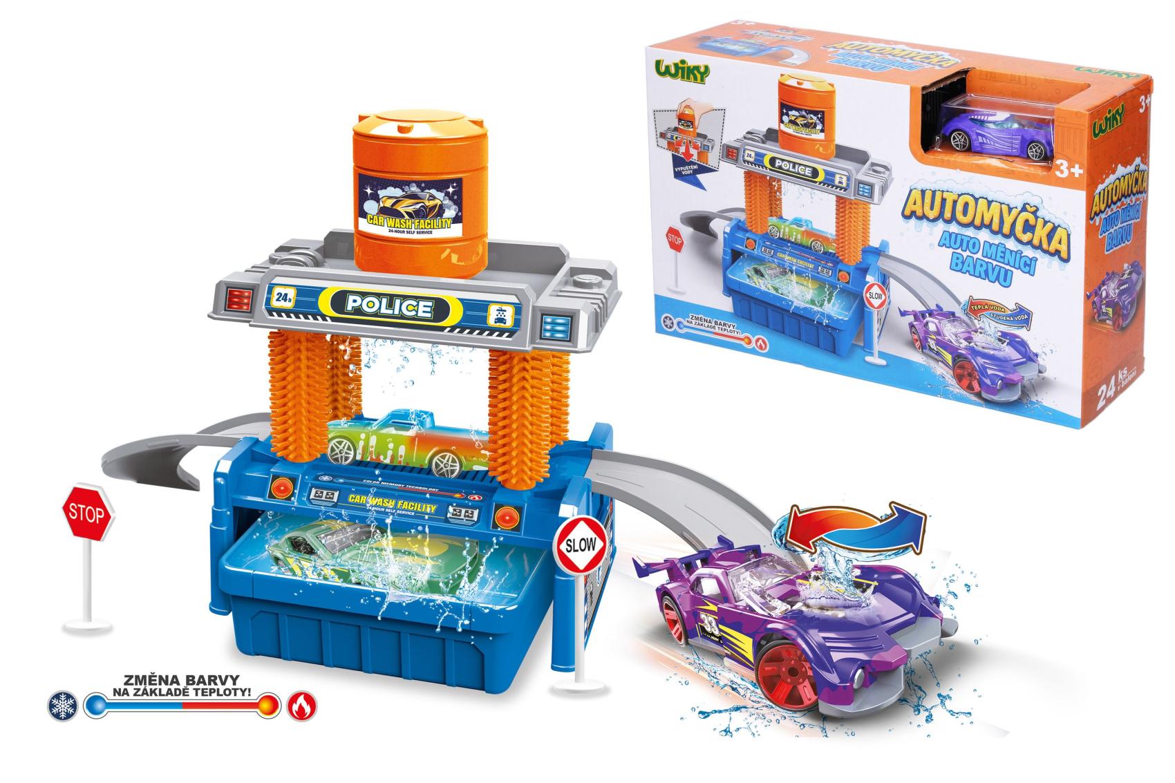 Automyčka + auto měnící barvu plast s doplňky v krabici 30x19cm
