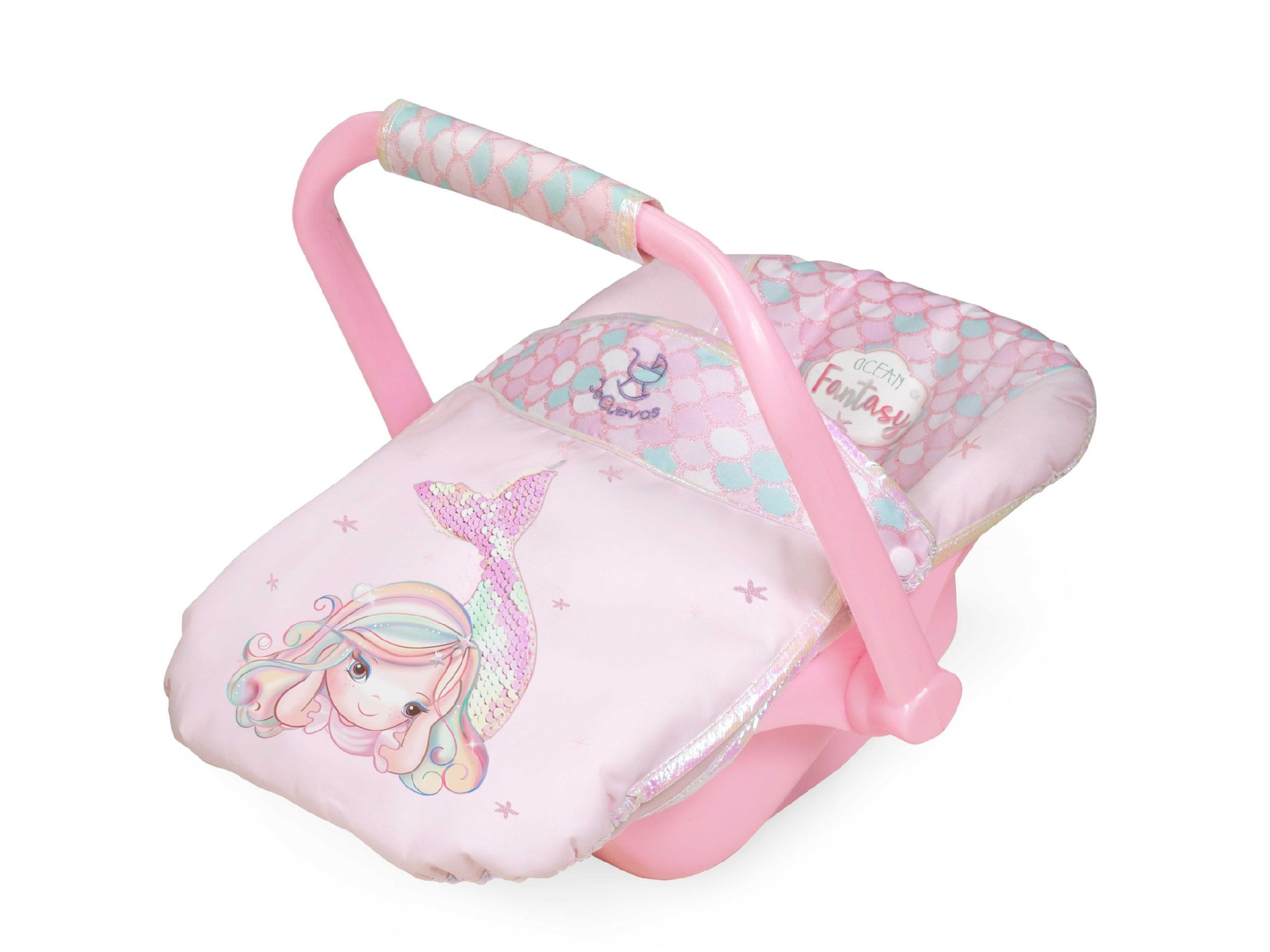 Panenka Evička jako mořská panna s průsvitnou ploutví, která se při pohybu třpytí. Velikost panenky 14 cm.