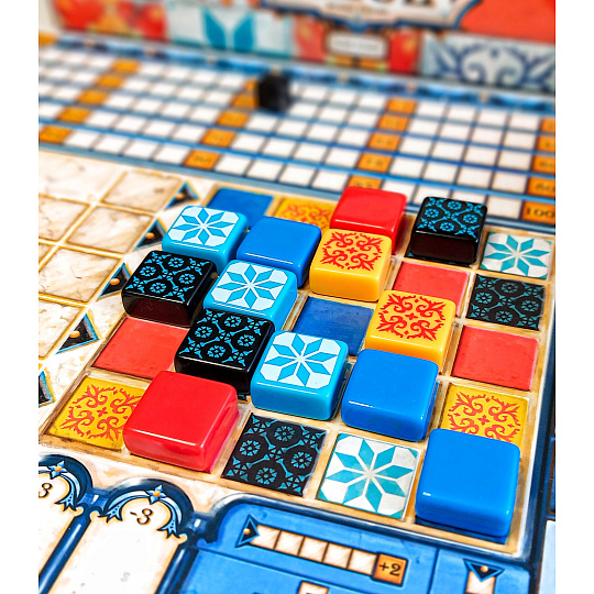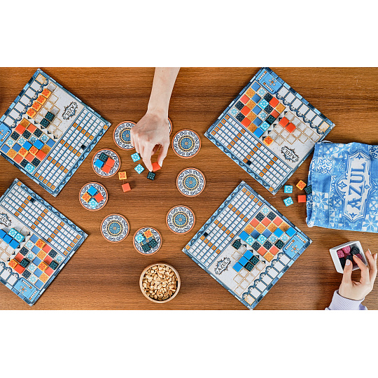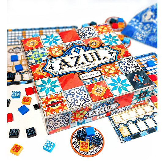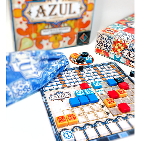 Portugalského krále Manuela I. při návštěvě paláce Alhambra v jižním Španělsku zcela okouzlila krása maurských dekorativních keramických dlaždic azulejos. Ty byly původně bílé a modré. Král unesen půvabem interiéru Alhambry okamžitě nařídil, aby byl jeho vlastní palác v Portugalsku vyzdoben podobnými dlaždicemi. Staňte se díky hře AZUL umělci! Tvořte návrhy a pokládejte dlaždice, které budou krášlit stěny královského paláce v Evoře.