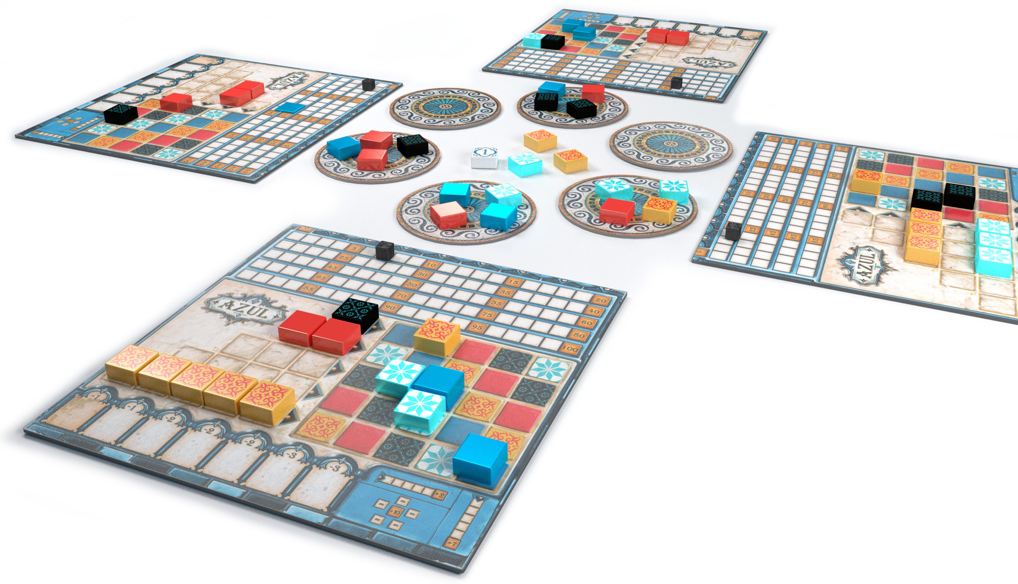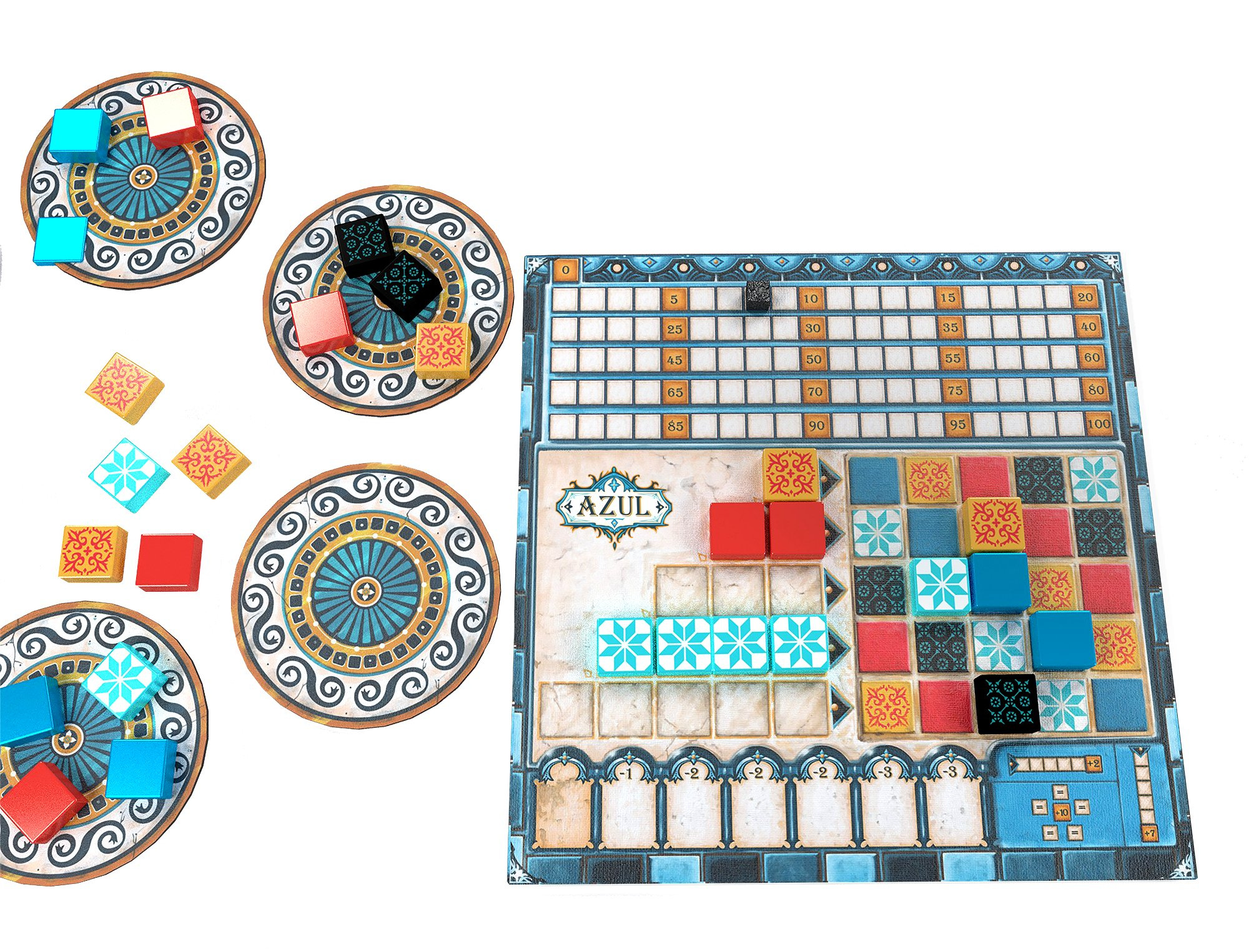 Portugalského krále Manuela I. při návštěvě paláce Alhambra v jižním Španělsku zcela okouzlila krása maurských dekorativních keramických dlaždic azulejos. Ty byly původně bílé a modré. Král unesen půvabem interiéru Alhambry okamžitě nařídil, aby byl jeho vlastní palác v Portugalsku vyzdoben podobnými dlaždicemi. Staňte se díky hře AZUL umělci! Tvořte návrhy a pokládejte dlaždice, které budou krášlit stěny královského paláce v Evoře.