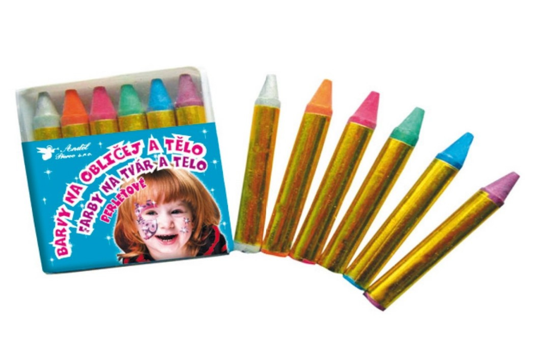 Barvy na obličej a tělo 6ks perleťové v sáčku 6x7cm karneval