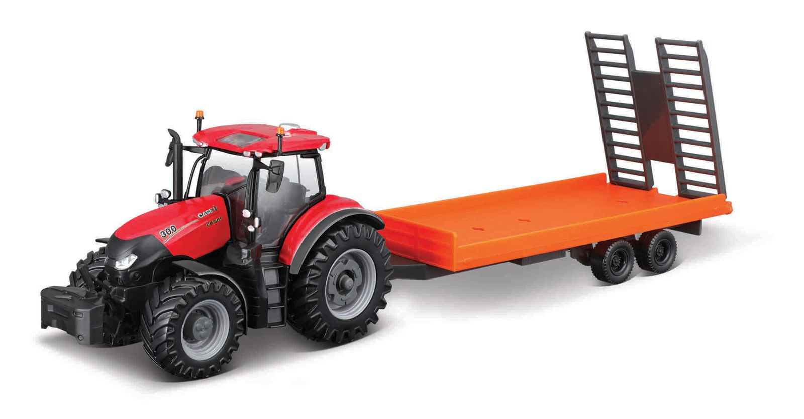 Bburago - FARMLAND, Case IH Optum CVX 300 s nízkopodlažním přívěsem, 10 cm