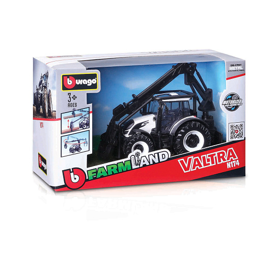 Bburago - FARMLAND, Lesní traktor se 3 kládami Traktor Valtra N174, 10 cm