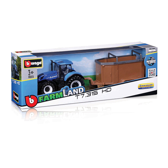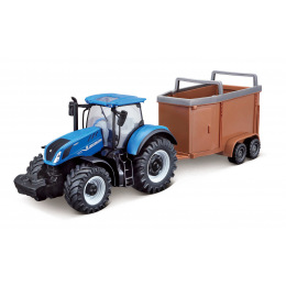Bburago - FARMLAND, New Holland T7.315 HD s přívěsem pro přepravu hospodářských zvířat, 10 cm