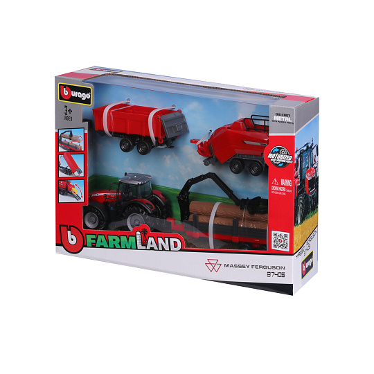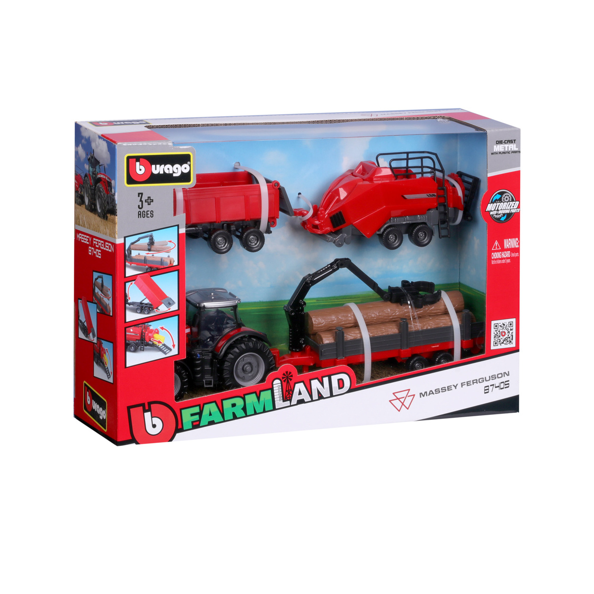 Bburago - FARMLAND, Set Massey Ferguson 8740S se třemi přívěsy, 10 cm