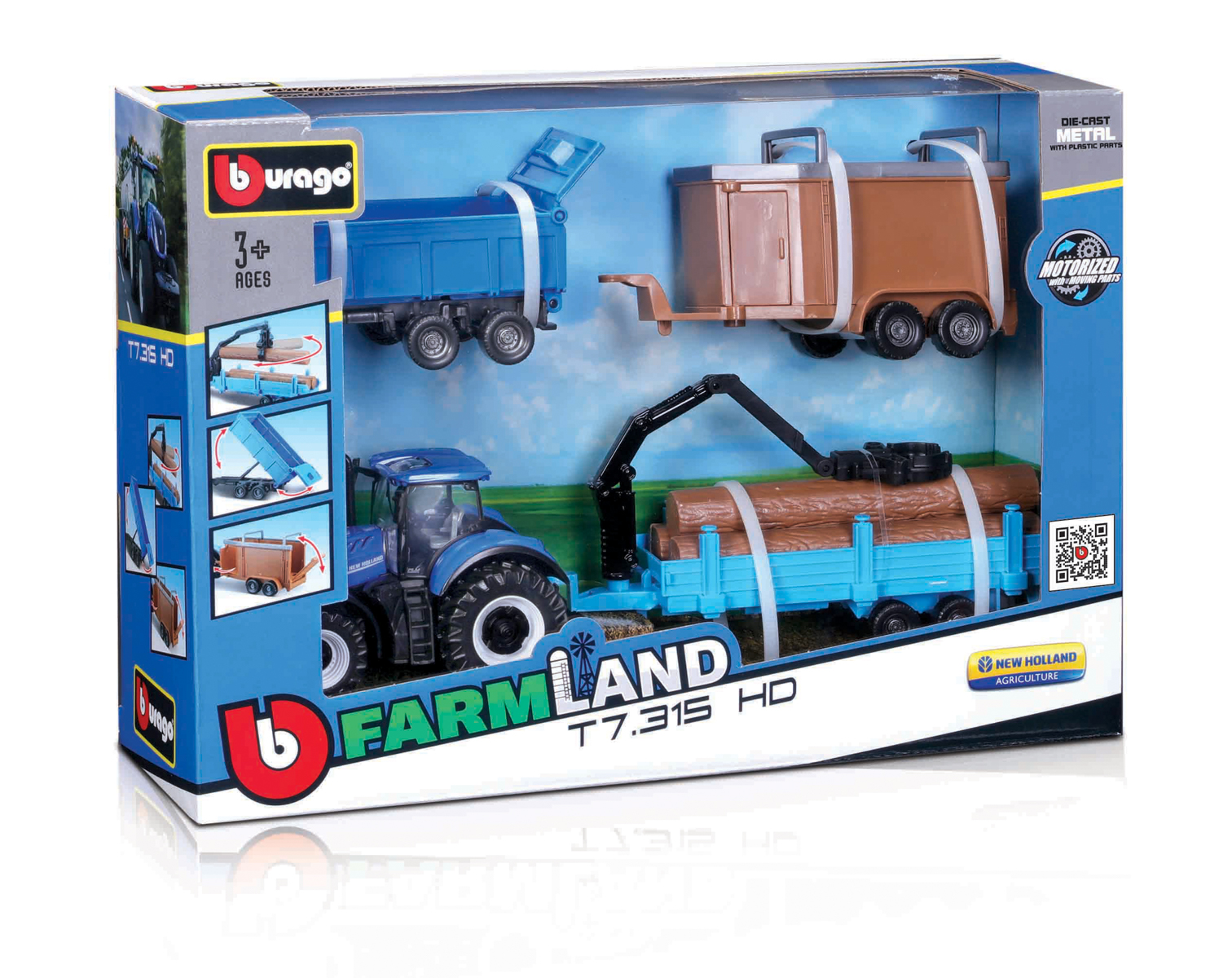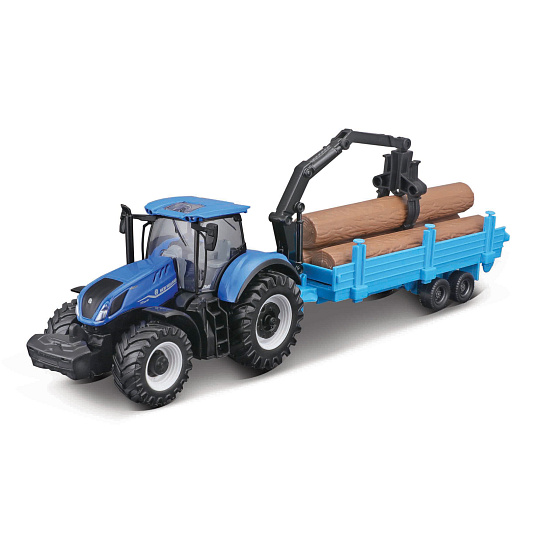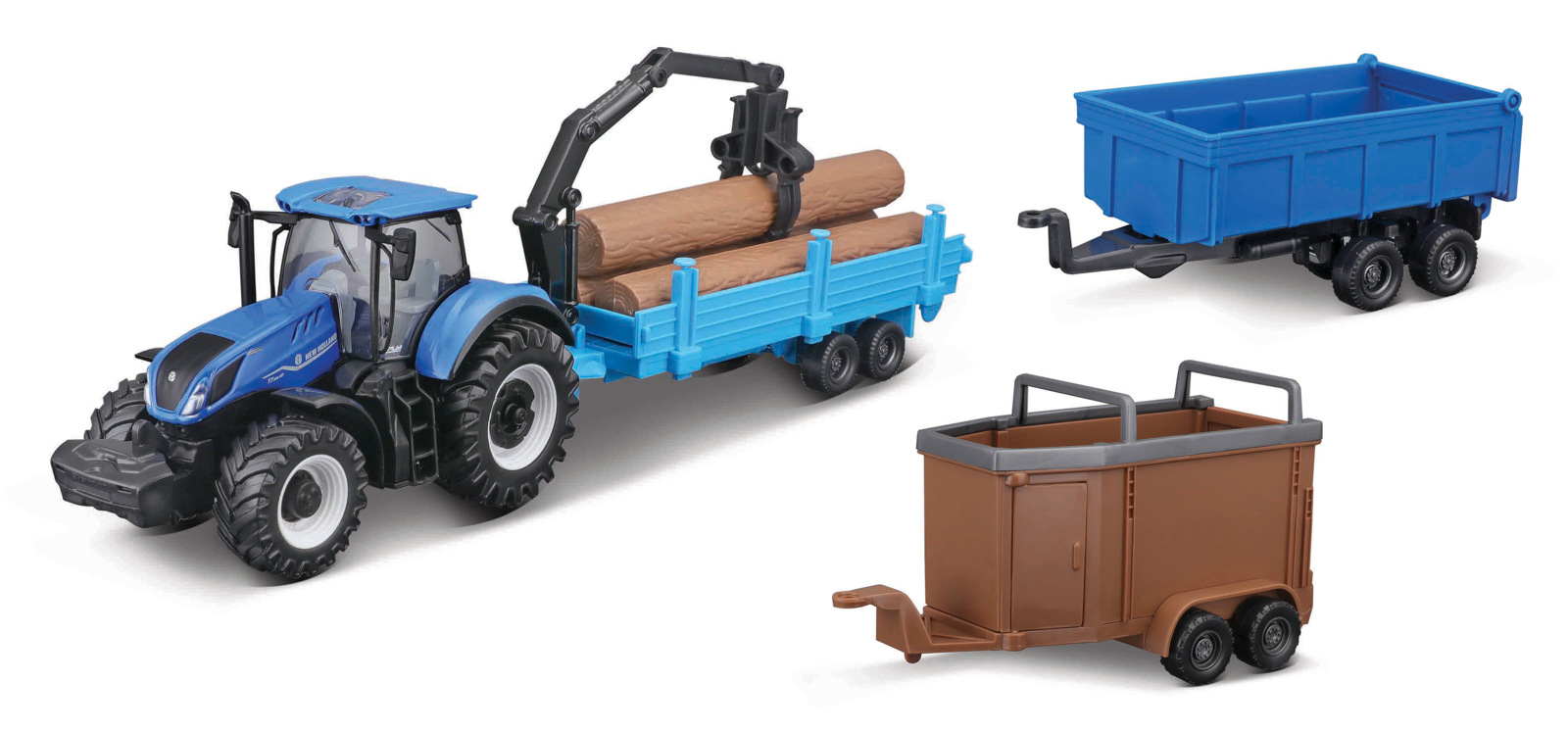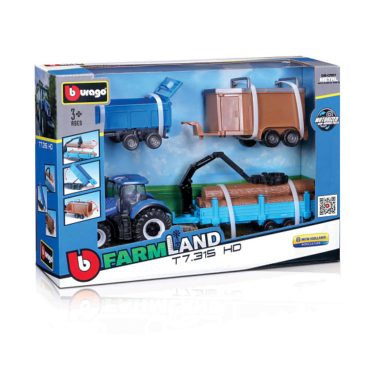 Bburago - FARMLAND, Set New Holland T7.315 HD se třemi přívěsy, 10 cm