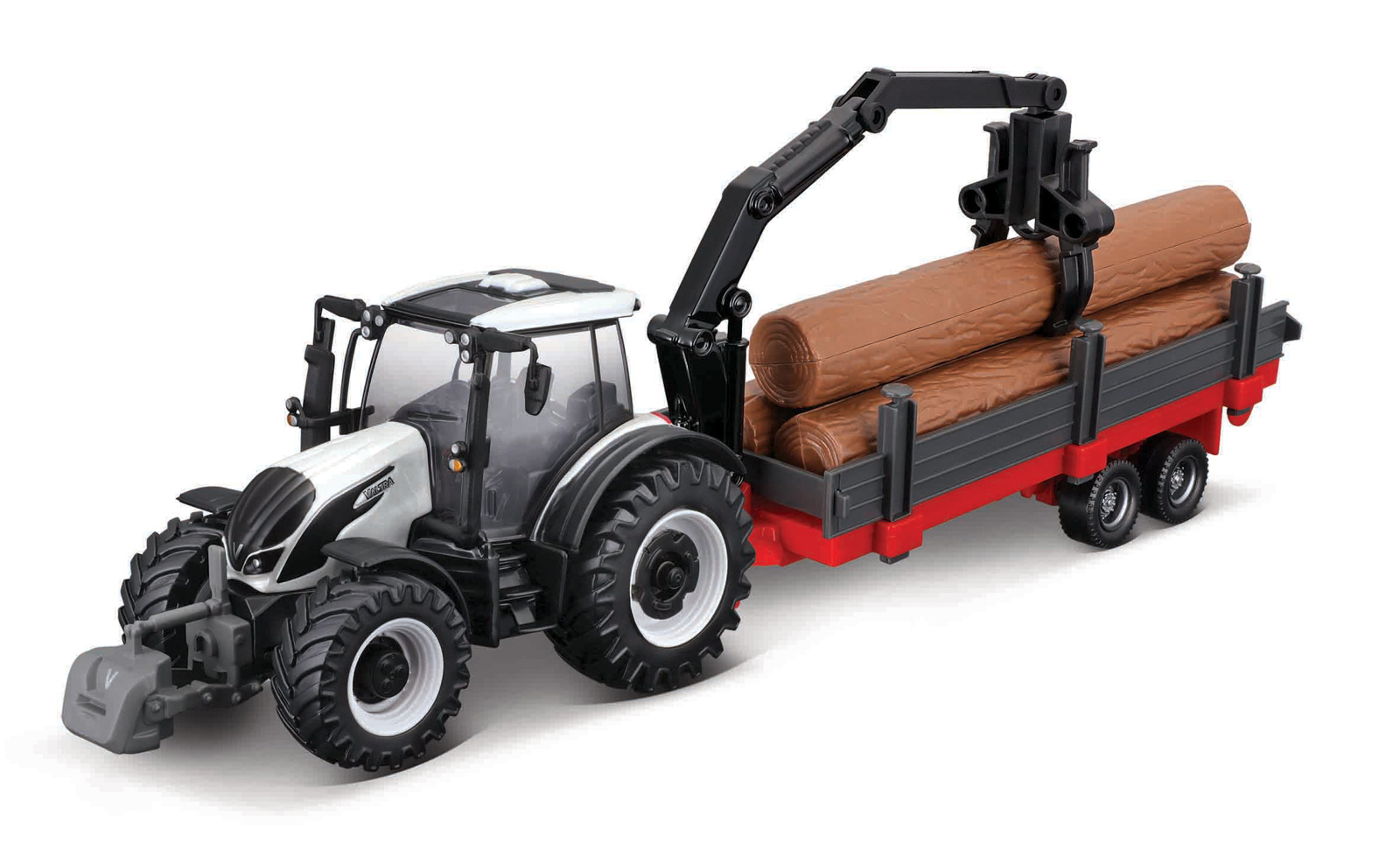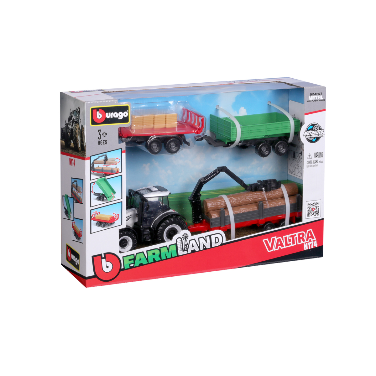 Bburago - FARMLAND, Set Valtra N174 se třemi přívěsy, 10 cm