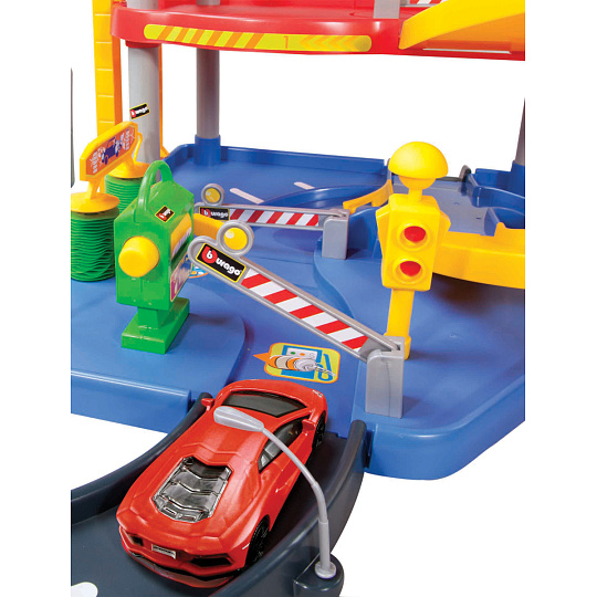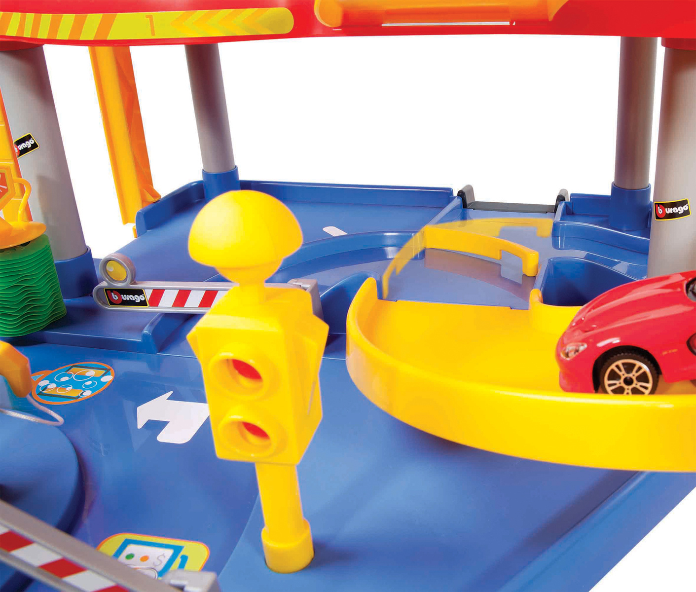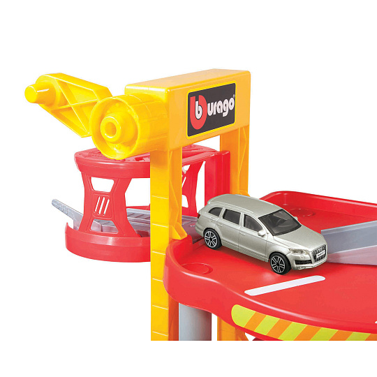 Bburago - STREET FIRE, Parkovací herní sada – garáž se dvěma autíčky, 1:43
