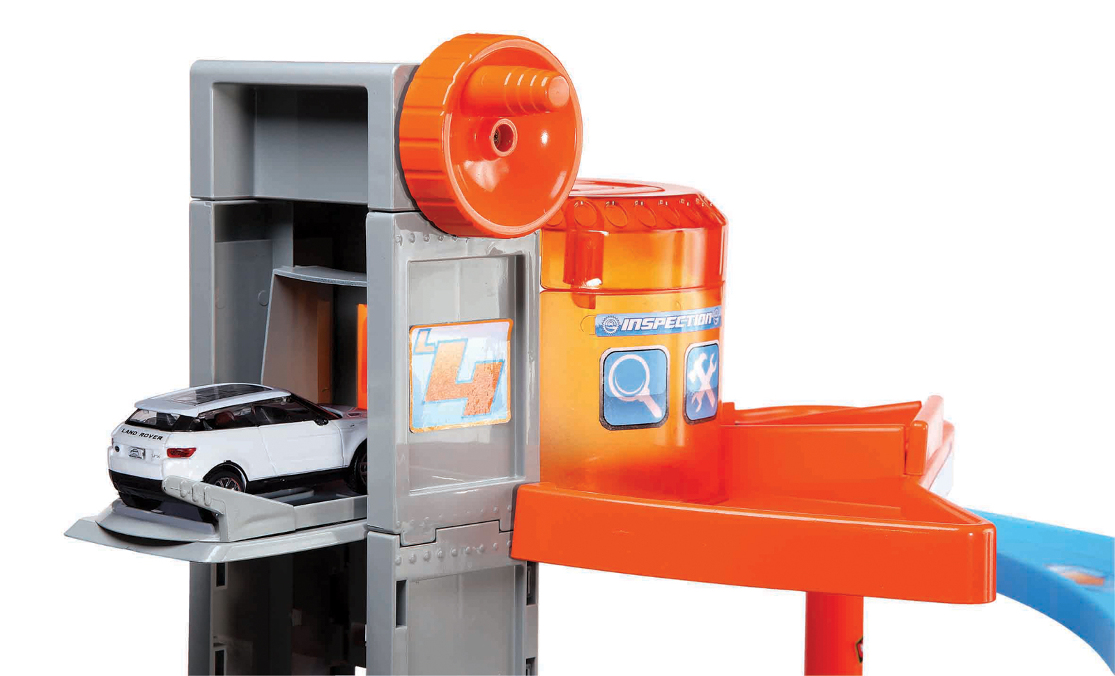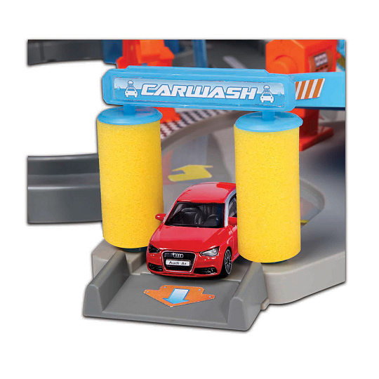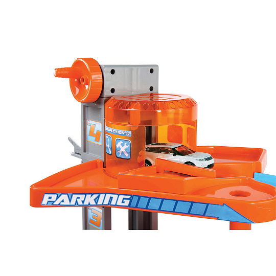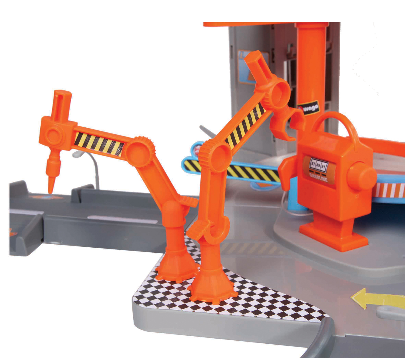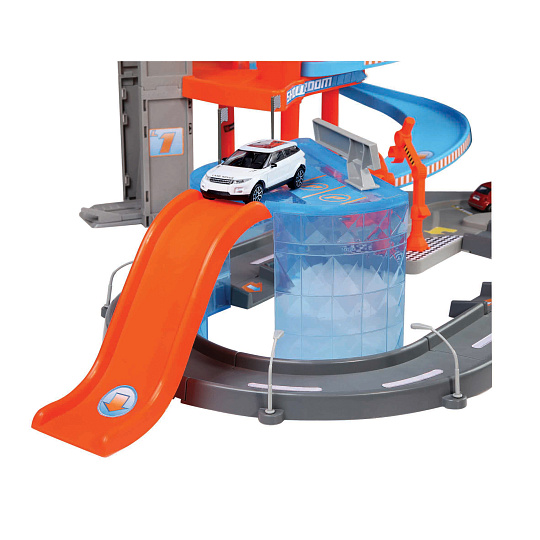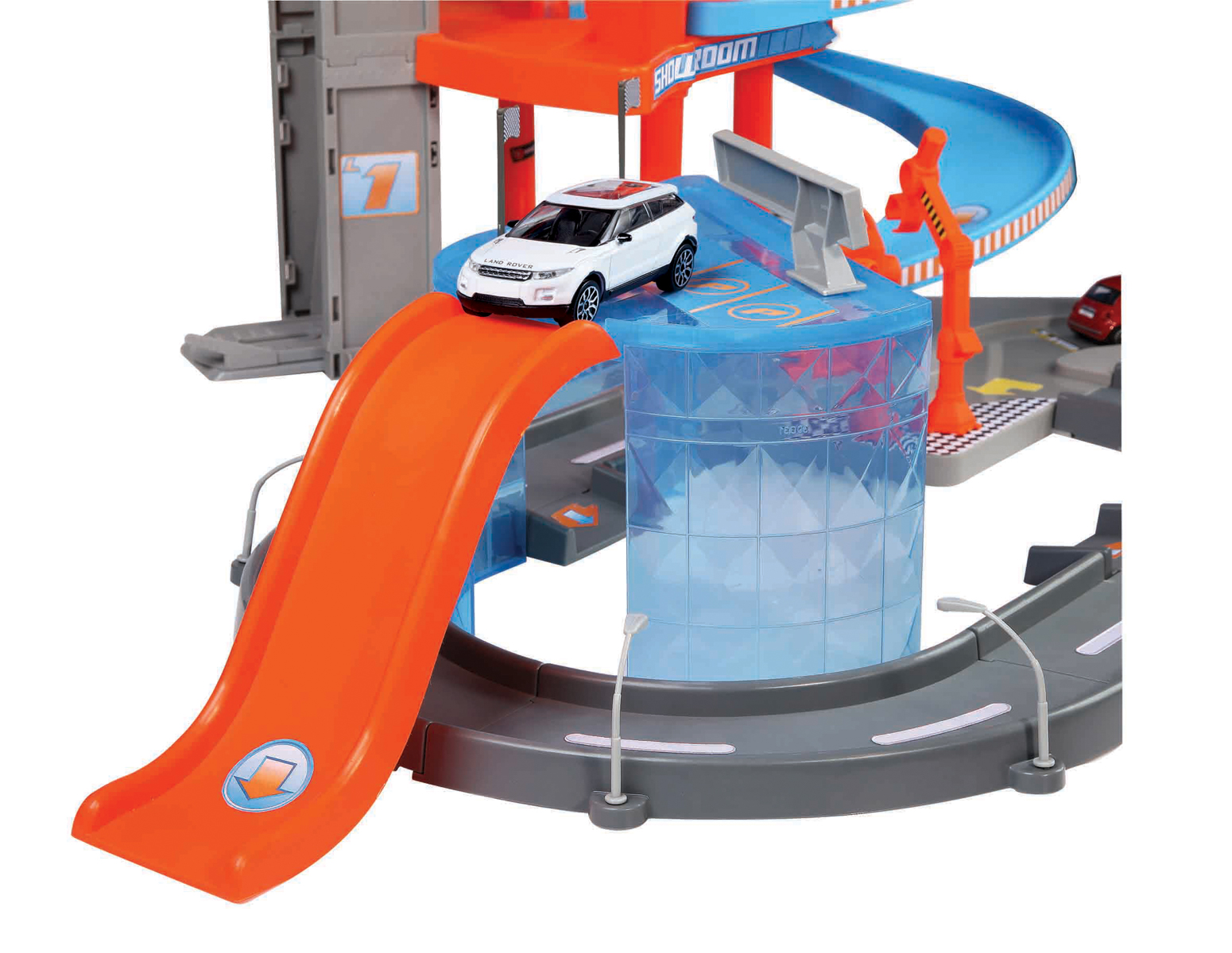 Bburago - STREET FIRE, Velká parkovací herní sada – garáž a showroom se dvěma autíčky, 1:43