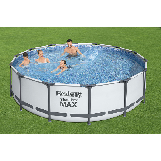 Bestway Nadzemní bazén kulatý Steel Pro MAX, kartušová filtrace, schůdky, plachta, průměr 4,27m, výška 1,07m