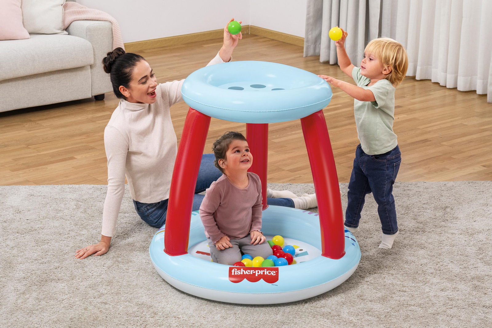 Bestway Nafukovací hrací centrum Fisher Price s míčky (15ks), 89cm x 89cm x 84cm