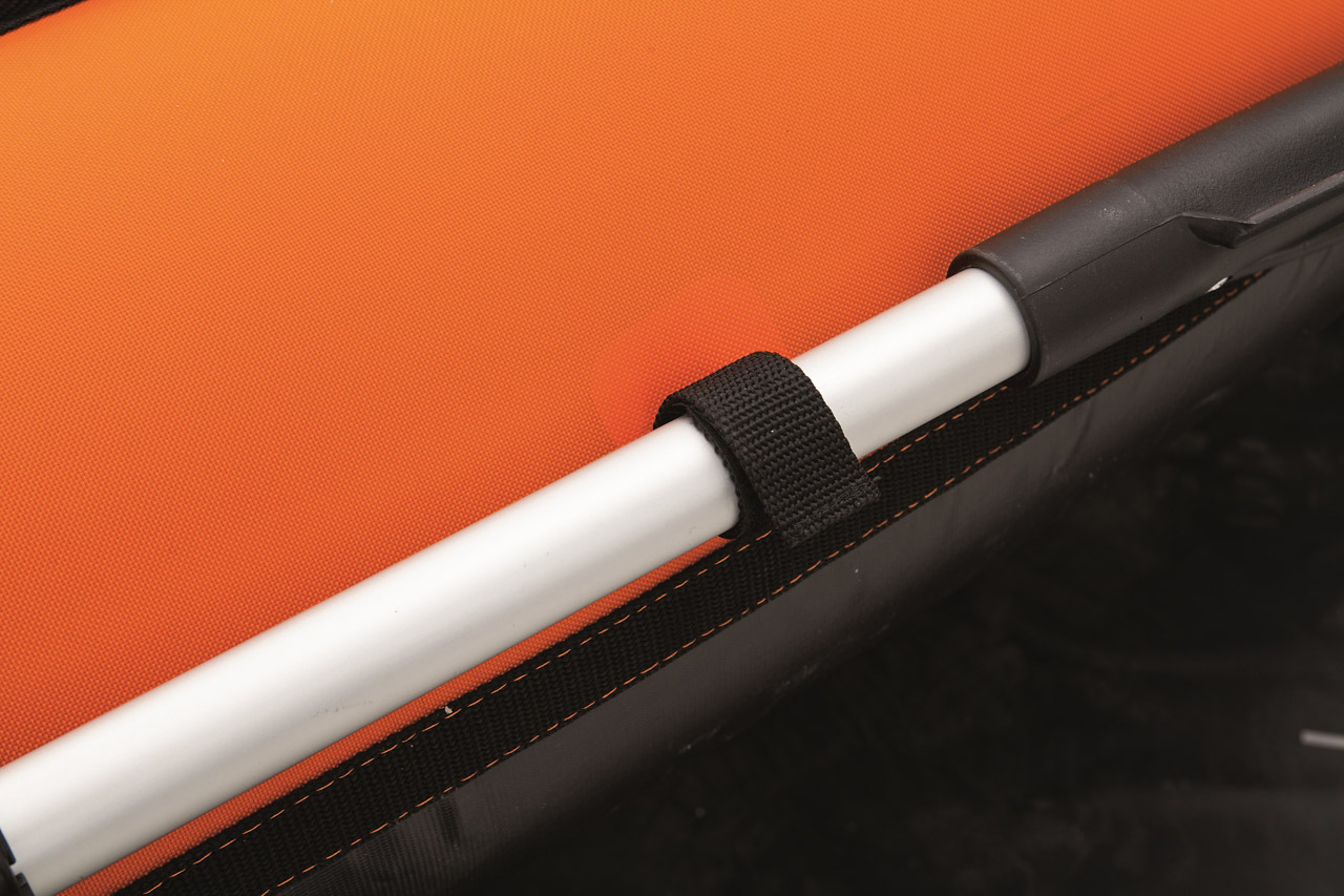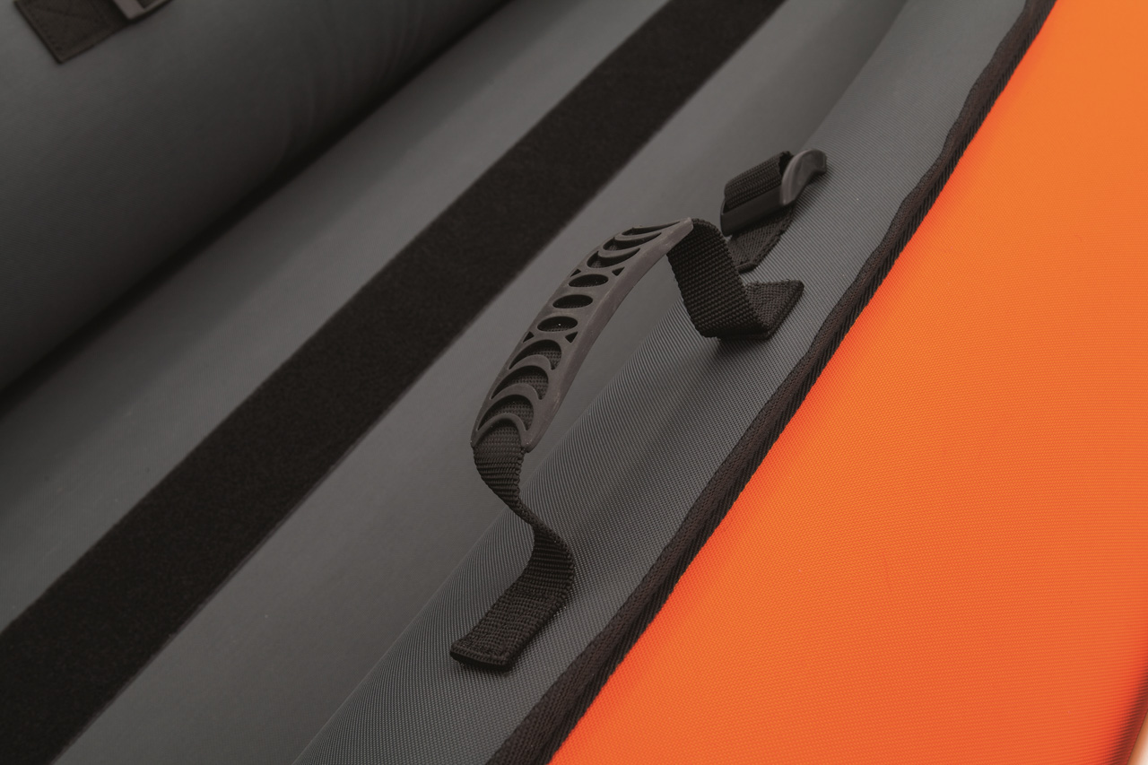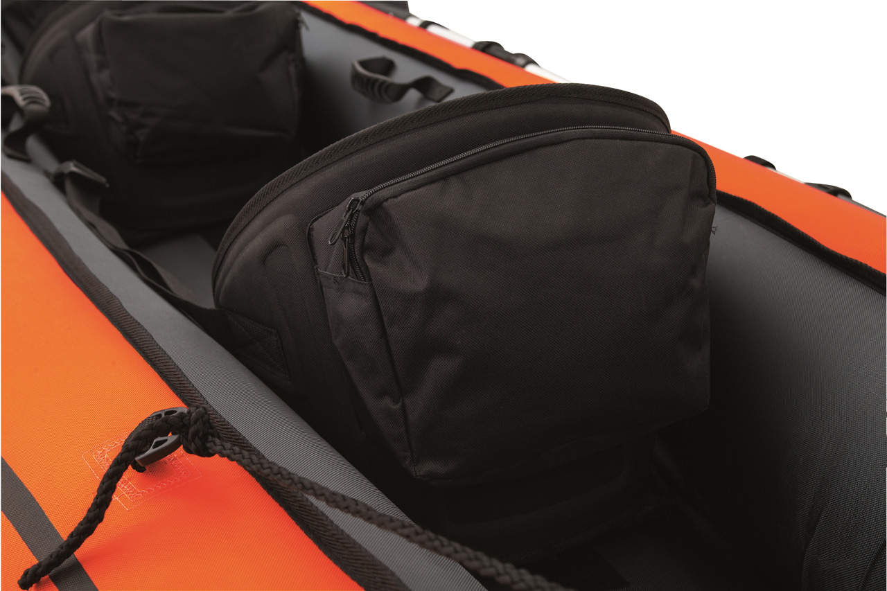 Dva odnímatelné boční panely; Základna s robustní konstrukcí I-beam, vysoce kvalitním potaženým nylonovým pouzdrem, odolným vůči UV záření, slané vodě a oleji; 2 nastavitelná sedadla s úložným prostorem, odnímatelným úložným pouzdrem, vestavěným odvodňovacím ventilem, obvodovou vazbou s vestavěnými průchodkami kabelů