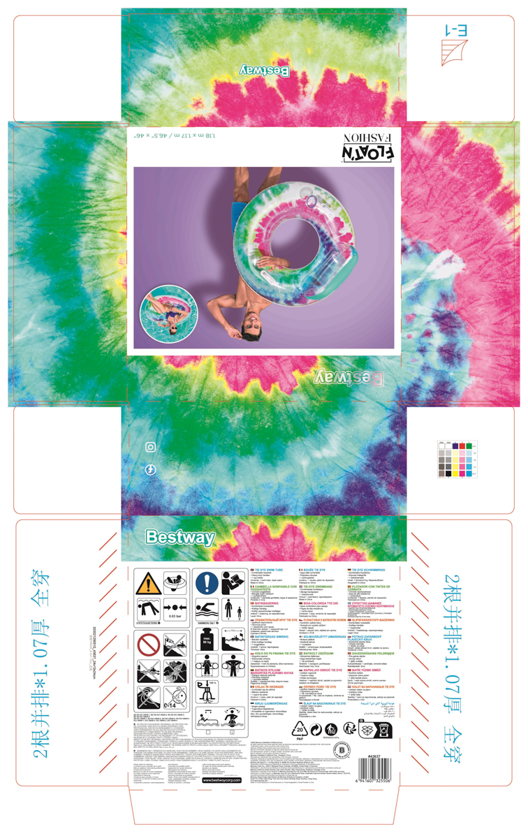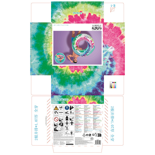 Bestway Nafukovací kruh/křeslo s úchyty Tie Dye, 118x117 cm
