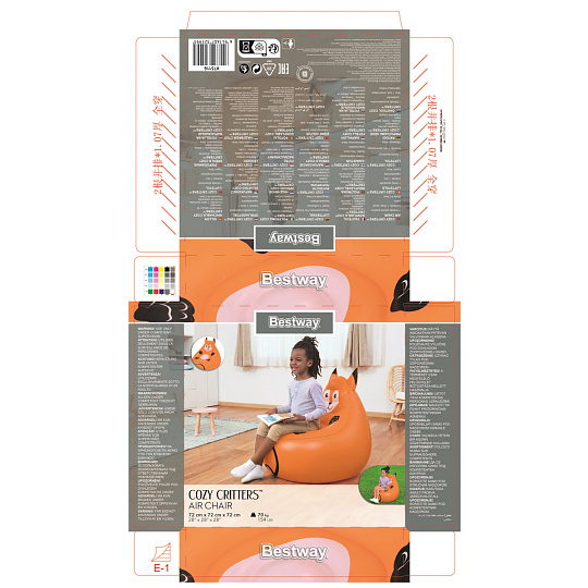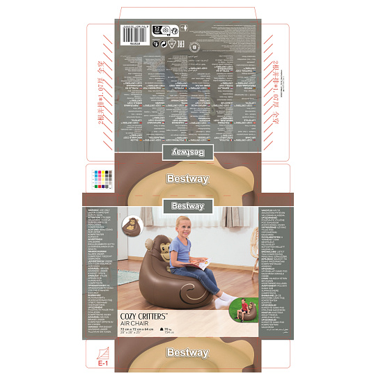 Bestway Nafukovacie kreslo Útulné zvieratká, assort, líška, panda, opica