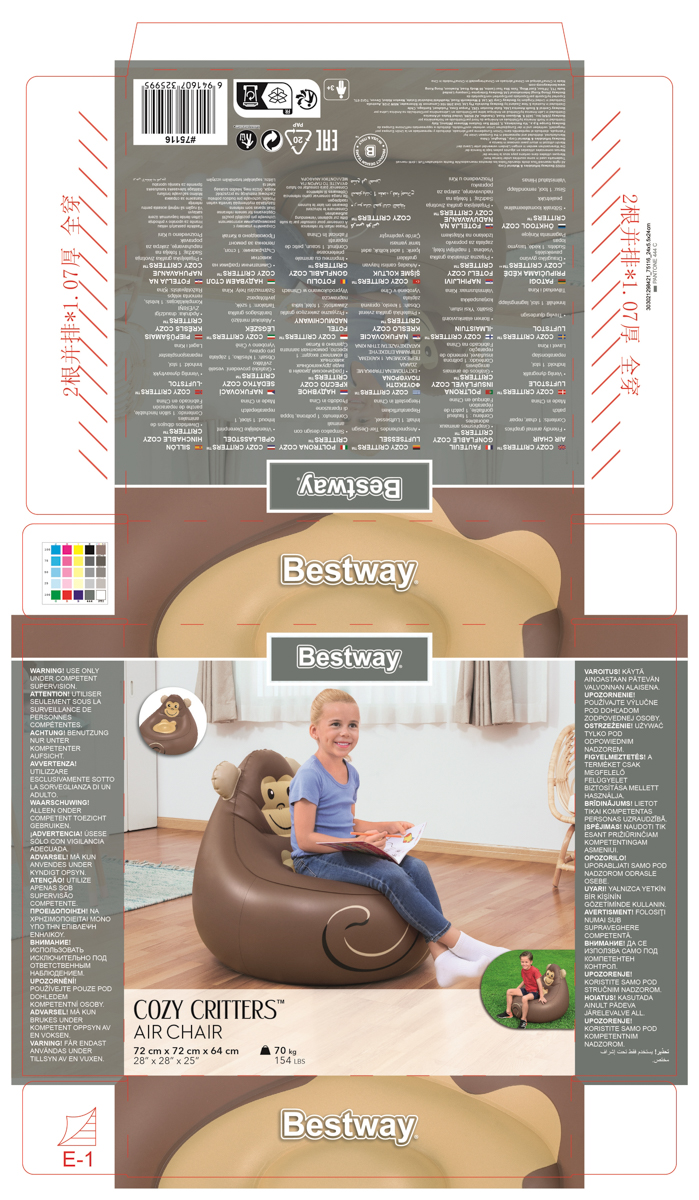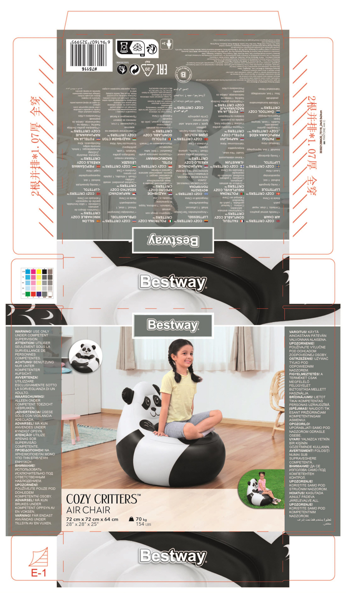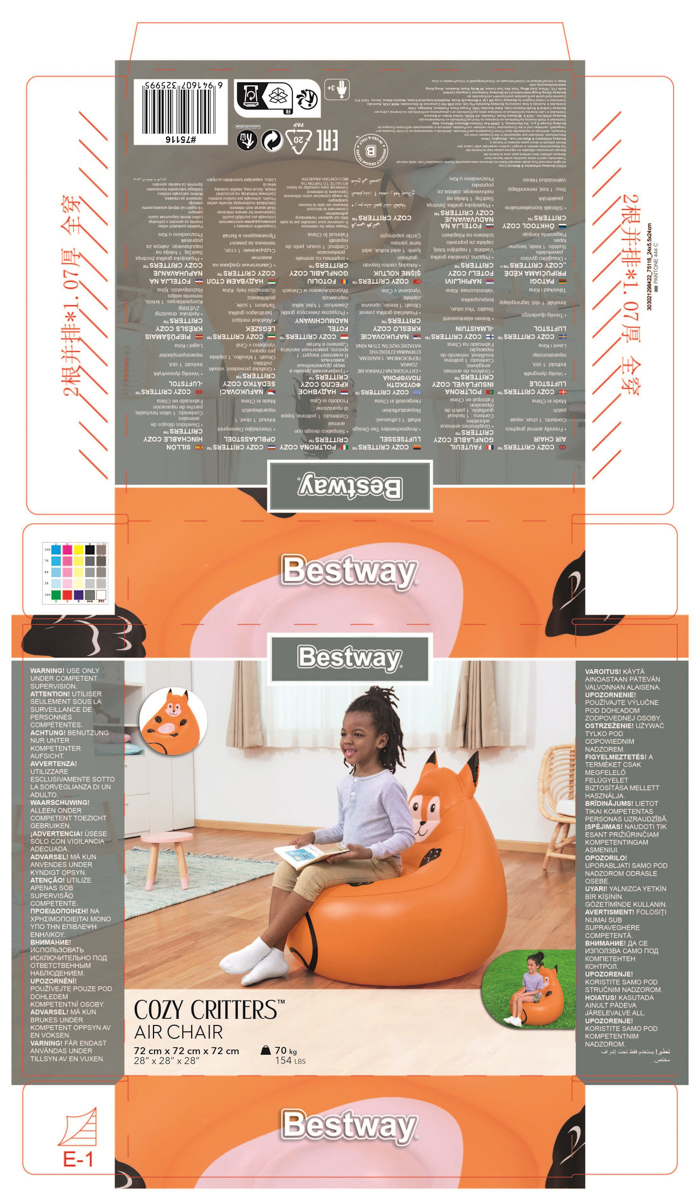 Bestway Nafukovacie kreslo Útulné zvieratká, assort, líška, panda, opica