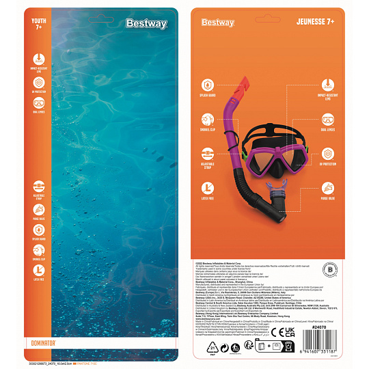 Bestway Šnorchlovací set Dominator mládež, maska, šnorchel (ružová, modrá)