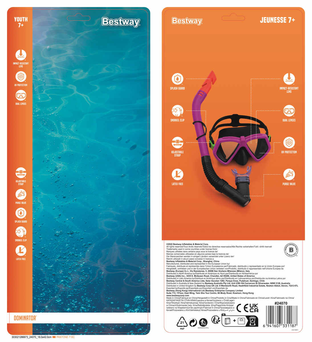 Bestway Šnorchlovací set Dominator mládež, maska, šnorchel (ružová, modrá)