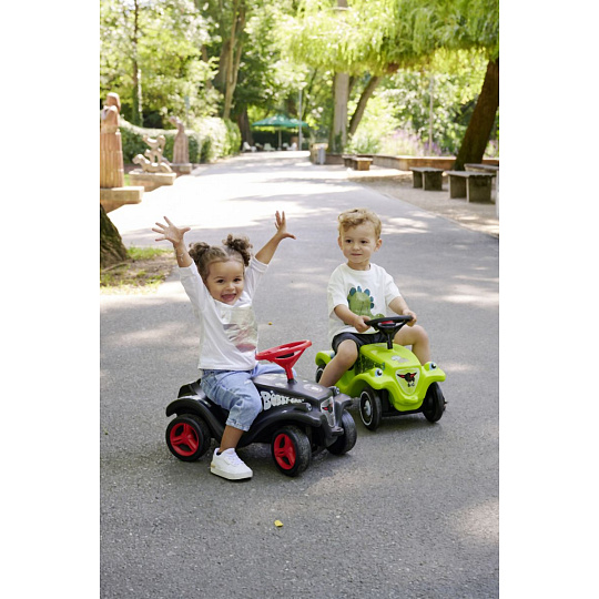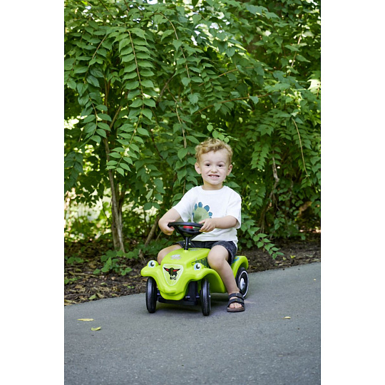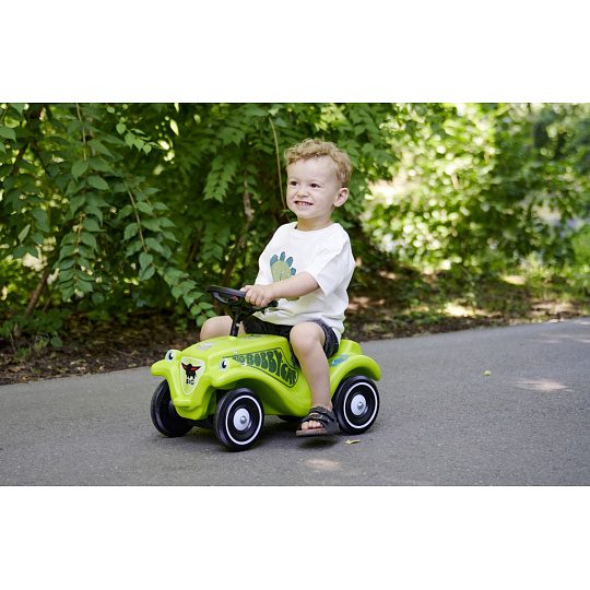 Odstrkovadlo s klaksonem, obrázky dinosaurů, ve veselé zelené barvě. Pevný, robustní plast. Nosnost 50 kg. Rozměry: 58 x 30 x 38 cm.