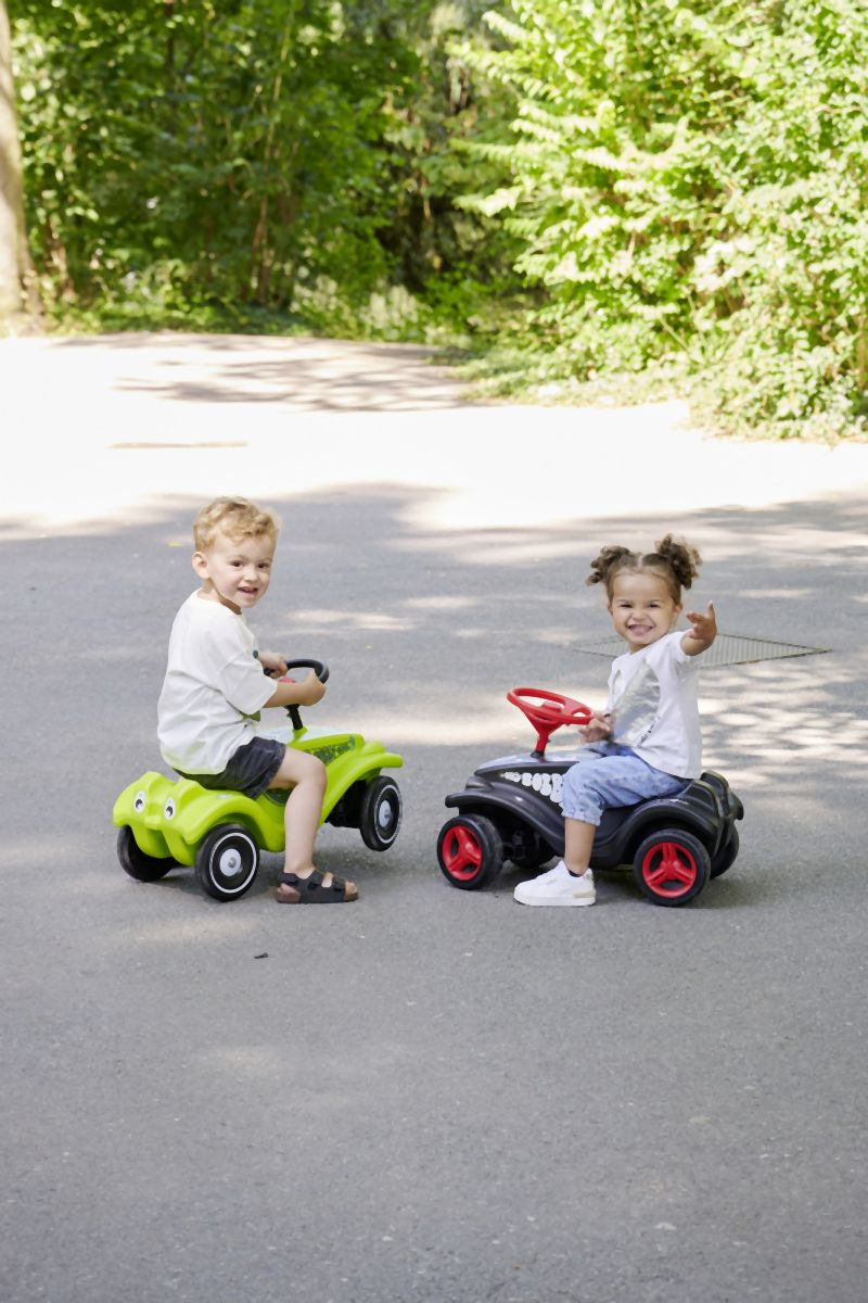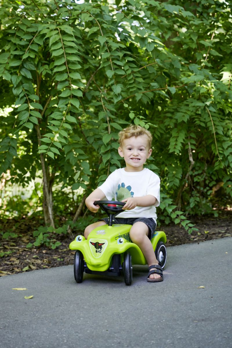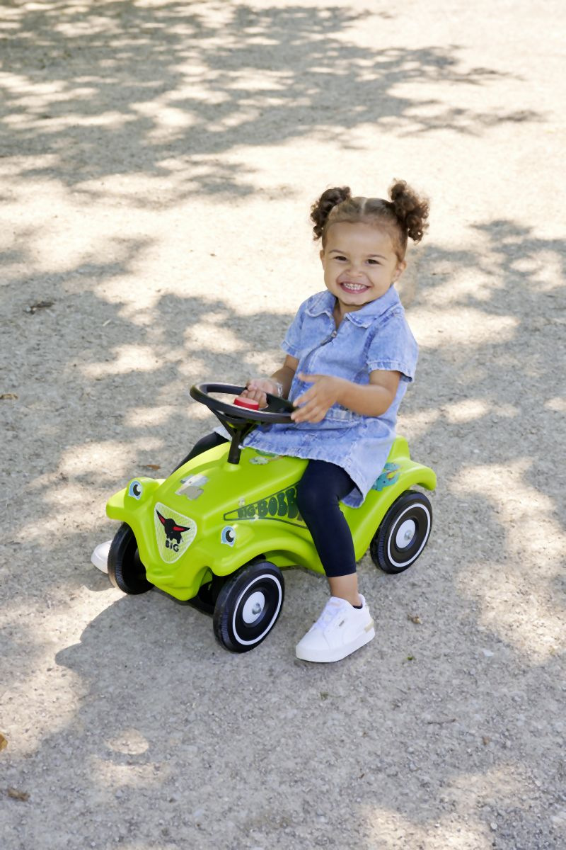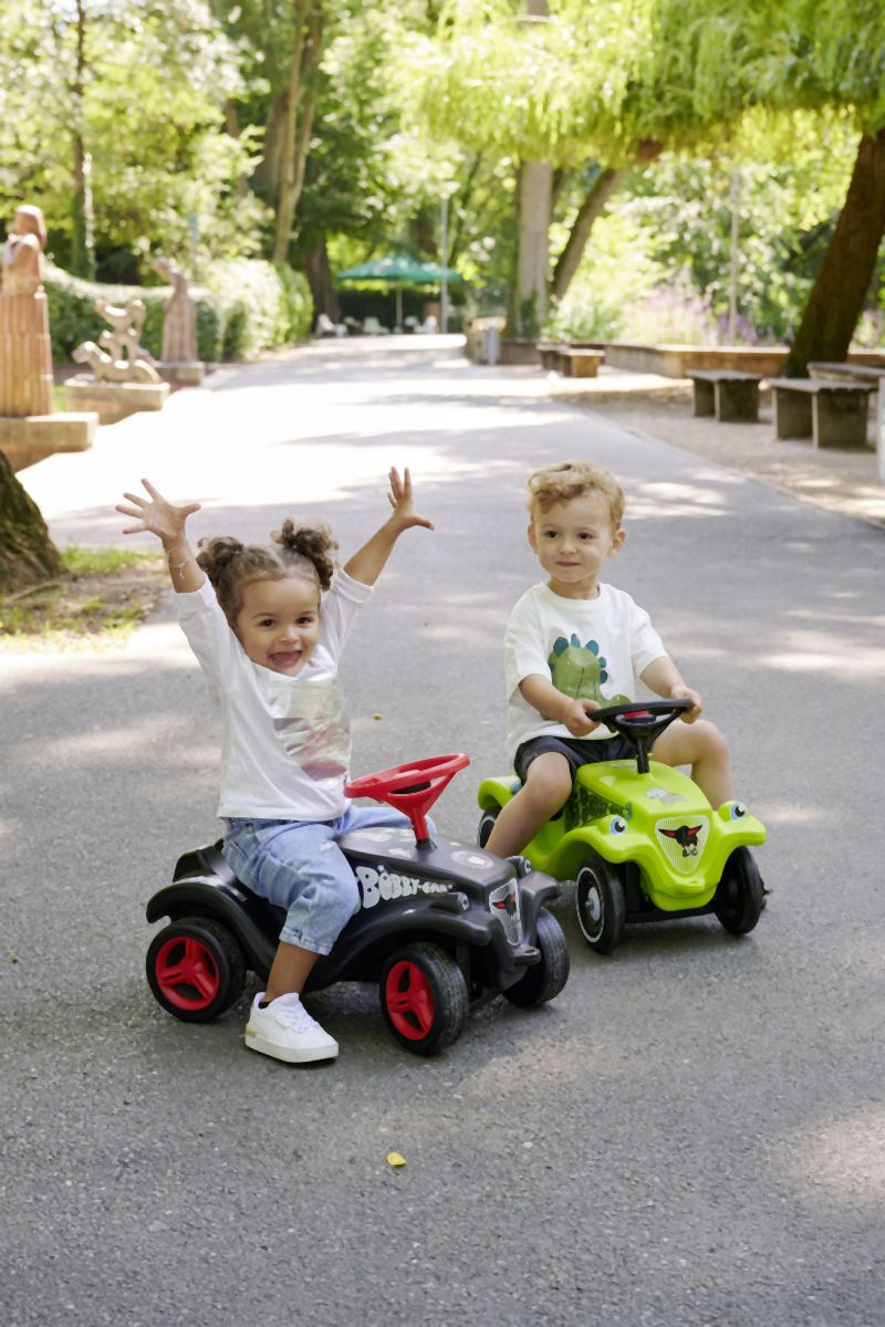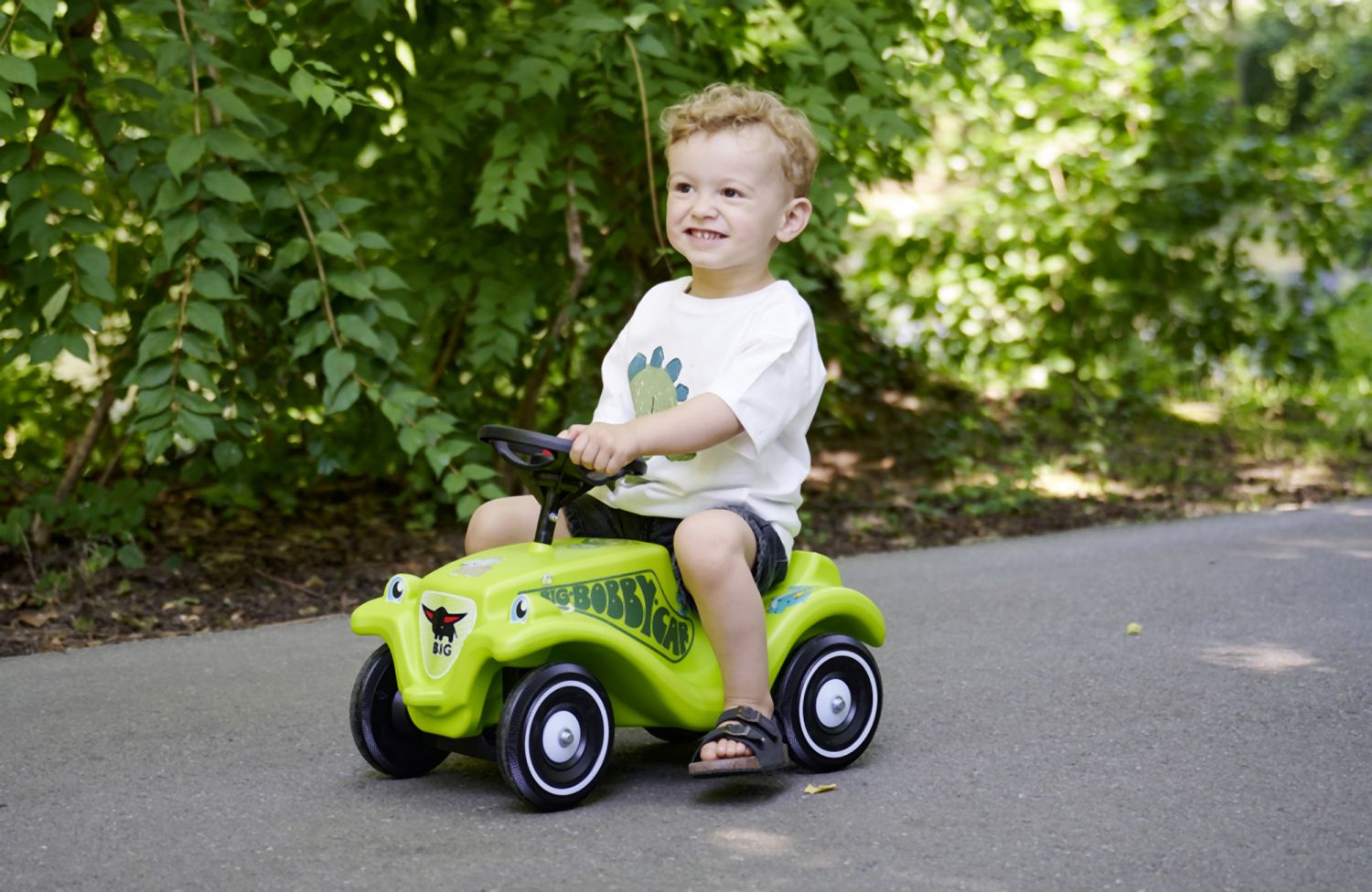 Odstrkovadlo s klaksonem, obrázky dinosaurů, ve veselé zelené barvě. Pevný, robustní plast. Nosnost 50 kg. Rozměry: 58 x 30 x 38 cm.