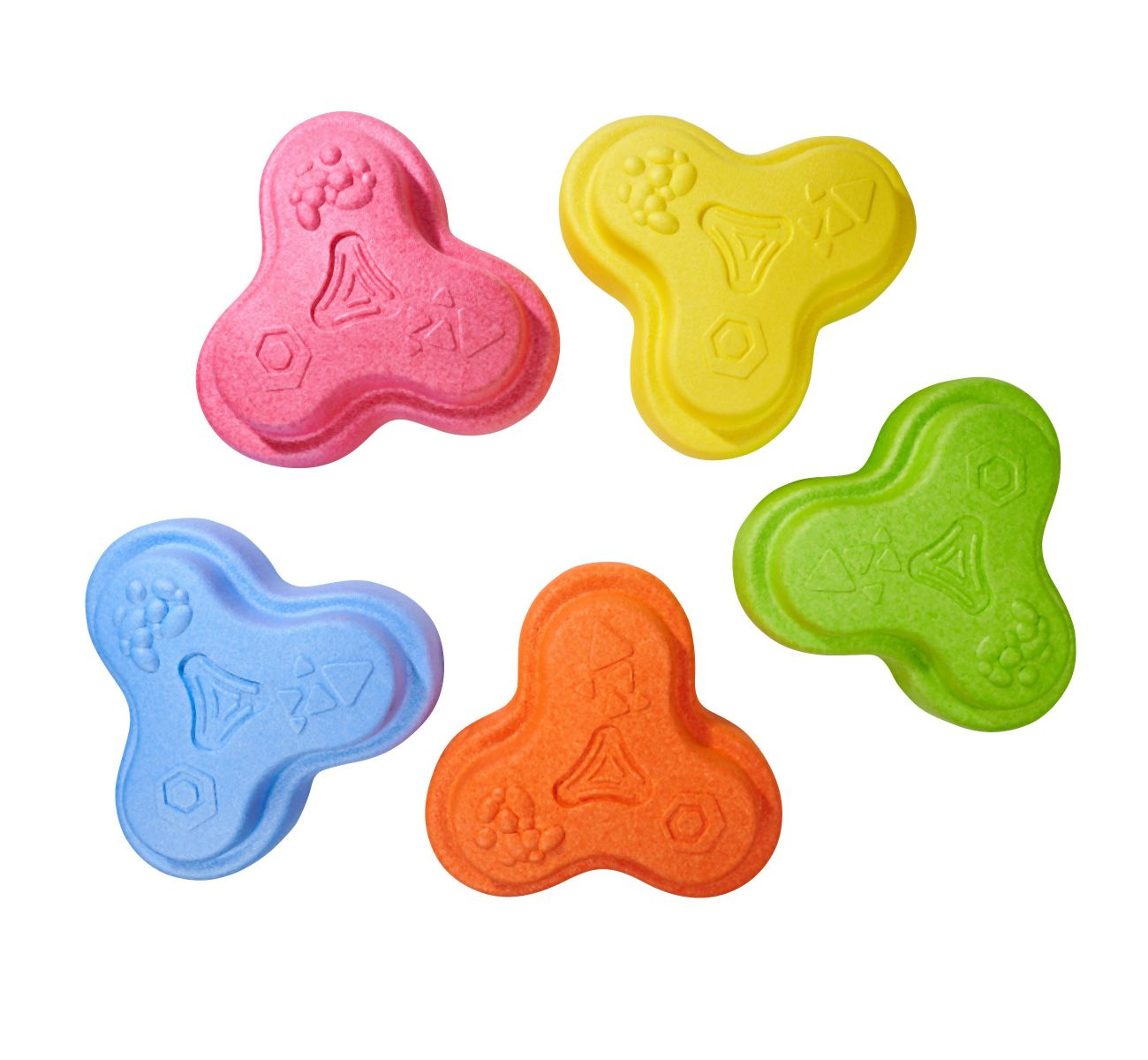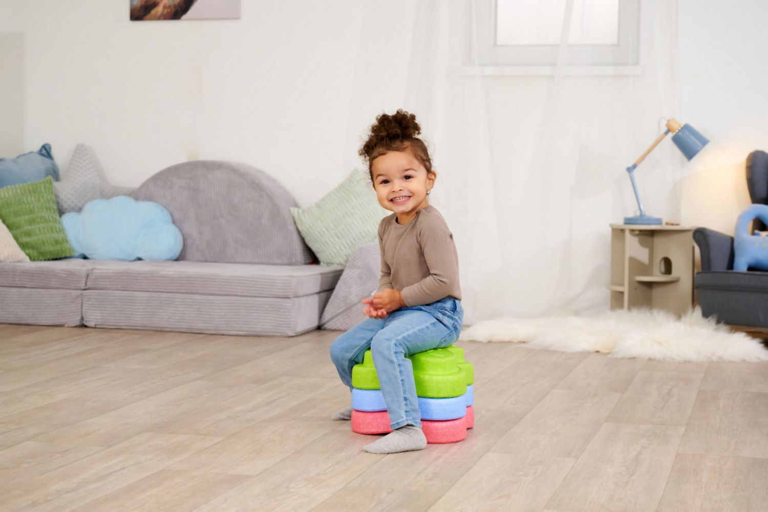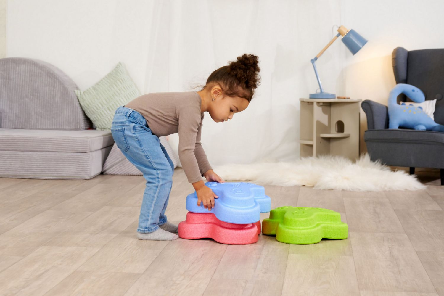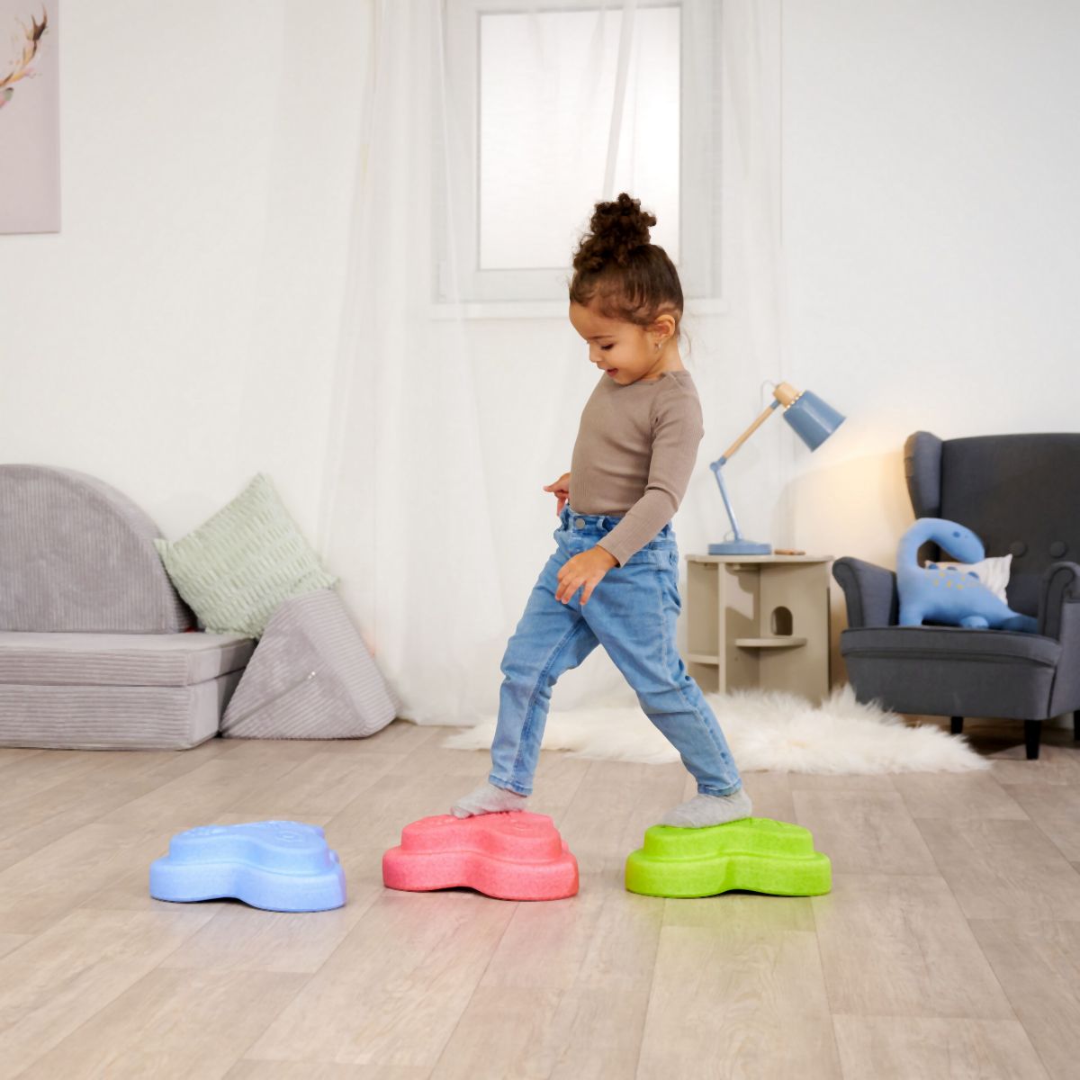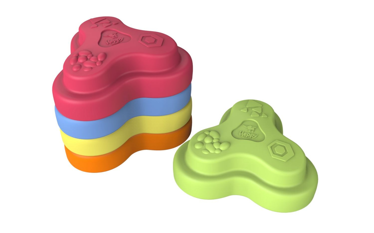 Sada 5 balančních nášlapných kamenů pro děti- v červené, modré, zelené, oranžové a žluté barvě - Měkké kostky se strukturovaným povrchem pro hmatovou hru a stavění. Tyto barevné hrací kameny byly speciálně vyvinuty pro batolata od 12 měsíců a hravou formou podporují smyslové vnímání, motorický vývoj a smysl pro rovnováhu. Vyrobeno z EPP: 90 % vzduchu, 10 % materiálu. Obzvláště robustní a extrémně lehké. Tři různé povrchové textury, kameny unesou zatížení až 120 kg. Díky svému materiálu jsou Heppy Rocks teplejší než jiné plastové hračky, snadno se čistí, jsou odolné vůči slinám a potu a ideální pro použití uvnitř i venku.