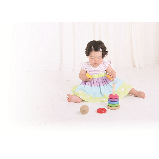 Naučte se vše o velikosti, od největšího po nejmenší, s tímto pestrobarevným dřevěným panáčkem. Součástí balení je vše dle obrázku. Tyč je se základnou spojena jen provázkem pro větší bezpečnost dětí pro případy, kdy na hračku spadnou. Pomáhá rozvíjet obratnost a koordinaci. Vyrobeno z vysoce kvalitních, odpovědně získaných materiálů. Odpovídá současným evropským bezpečnostním normám. Skládá se z 9 kusů.