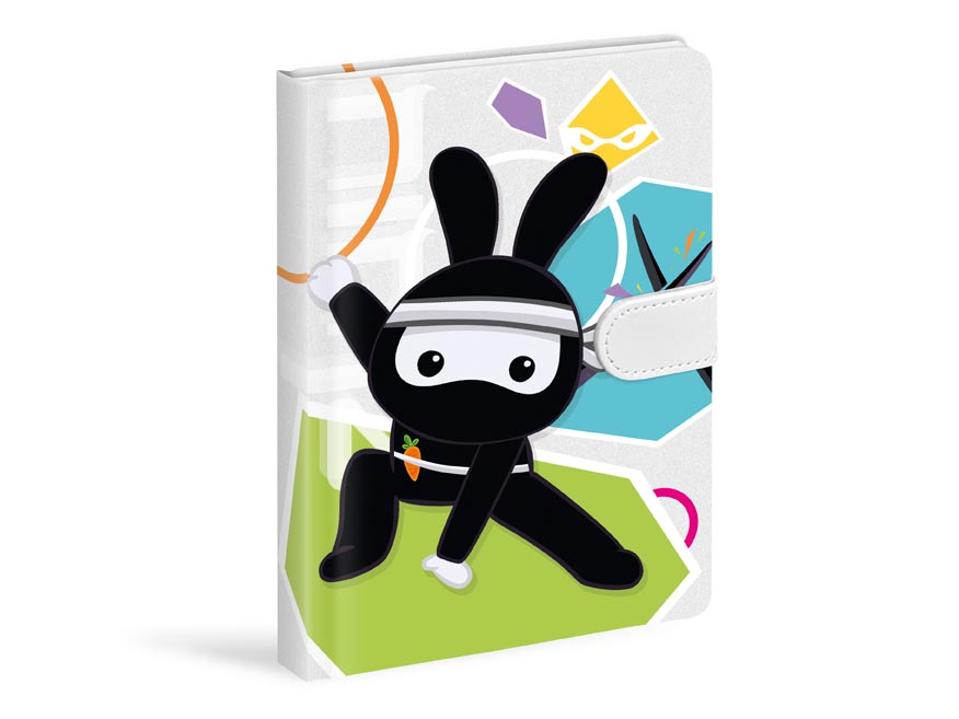 Linkovaný poznámkový blok se zaoblenými rohy. Blok je s motivem roztomilého černého ninja králíčka. Součástí bloku je špionské pero s neviditelným inkoustem, který je čitelný pouze pod UV světlem. Všechny důvěrné informace budou tak skryty. Pero v černé barvě je vybaveno malým světýlkem, díky kterému je text viditelný. Blok se uzavírá na magnet.Motiv: ninja králíkRozměry: 130 x 190 mmPočet listů: 100 listů s linkamiUvedená cena je za 1 ks.