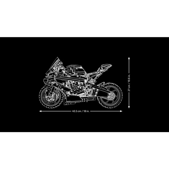 Tento působivý model motorky v měřítku 1:5 je vůbec první v řadě LEGO Technic. Díky autentickým prvkům model vypadá a pohybuje se přesně jako ve skutečnosti. Prohlédněte si funkční převodovku se 3 rychlostmi (a neutrálem), řízení, přední a zadní odpružení, řetězový pohon a řadový motor se 4 písty. S kultovním logem BMW a 2 podstavci se bude motorka skvěle vyjímat na výstavce.