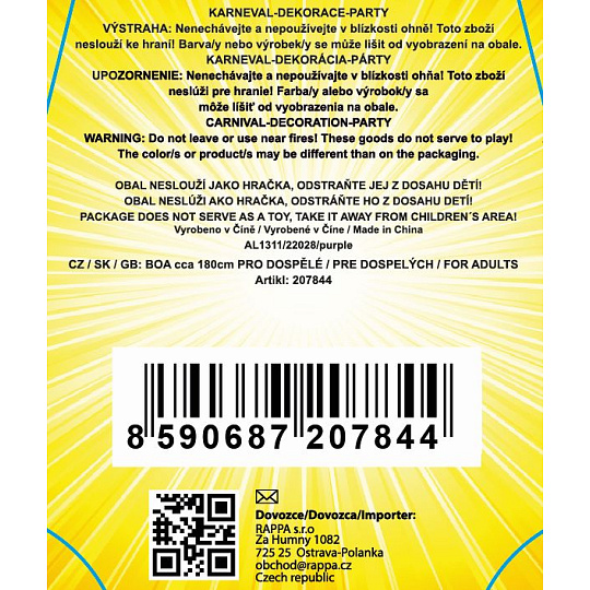 Péřové boa ve fialové barvě je skvělým doplňkem na ples nebo karneval! Jeho délka je cca 1,8 m.